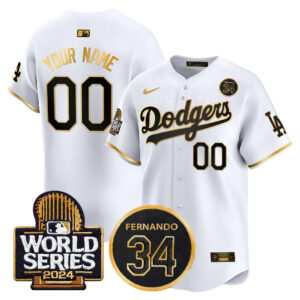 Women’s Dodgers 2024 World Series Gold Trim Vapor Premier Limited Jersey – All Stitched