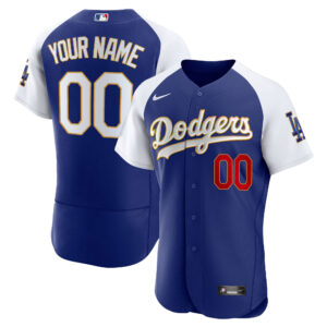 Los Angeles Dodgers Gold Trim Flex Base Custom Jersey – All Stitched
