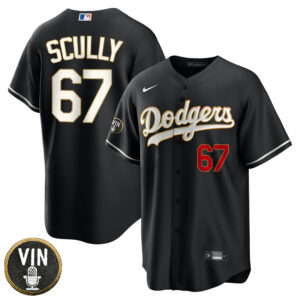 Los Angeles Dodgers Vin Scully Patch Black Gold Trim Jersey – All Stitched