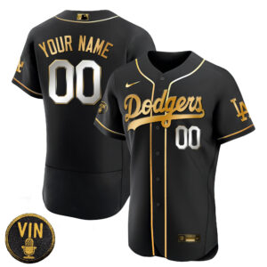 Dodgers Black Limited Vin Scully Patch Gold Custom Jersey – All Stitched