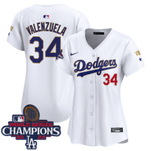 Women’s Dodgers 2024 World Series Champions Gold Trim Vapor Premier Limited Jersey – All Stitched