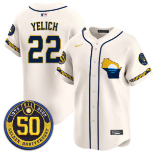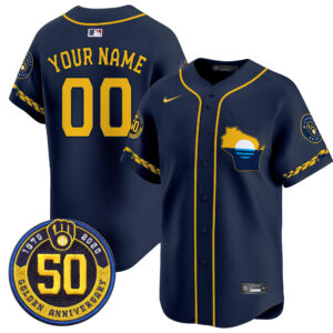 Milwaukee Brewers Golden 50th Anniversary Patch Vapor Premier Limited Custom Jersey – All Stitched