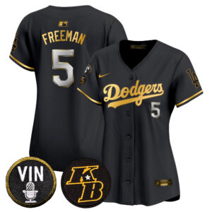 Women’s Dodgers Vin & Kobe Patch Gold Trim Vapor Premier Limited Jersey – All Stitched