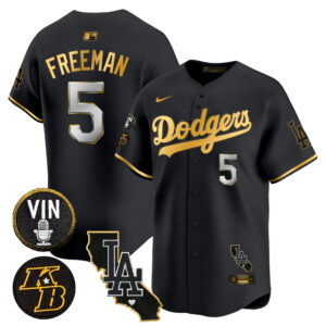 Dodgers Vin Patch & Kobe Bryant Gold Trim Vapor Premier Limited Custom Jersey V2 – All Stitched