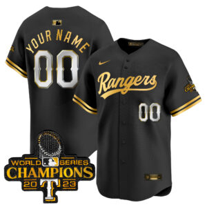 Texas Rangers 2023 World Series Champions Gold Trim Vapor Premier Elite Custom Jersey – All Stitched