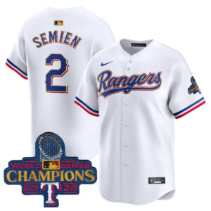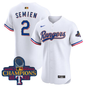 Men’s Texas Rangers 2023 World Series Champions Gold Trim Vapor Premier Elite Jersey – All Stitched