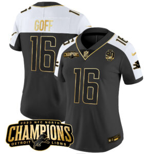 Women’s Detroit Lions 2023 NFC North Champions Patch Gold Vapor Jersey V2 – All Stitched