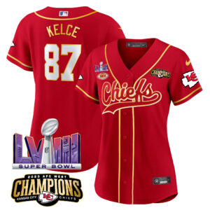 Women’s Chiefs AFC West Champions & Super Bowl LVIII Patch Baseball Jersey – All Stitched