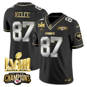 Men’s Chiefs AFC West Champions & Super Bowl LVIII Gold Patch Vapor Jersey V2 – All Stitched
