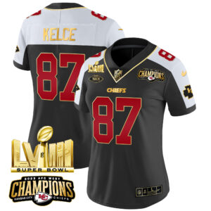 Women’s Chiefs AFC West Champions & Super Bowl LVIII Gold Patch Vapor Jersey – All Stitched