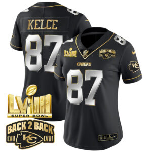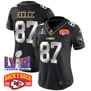 Women’s Chiefs Super Bowl LVIII & Back 2 Back Gold Patch Vapor Jersey V2 – All Stitched
