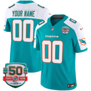 Men’s Dolphins Gold Trim Vapor Limited Jersey – All Stitched