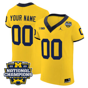 Michigan Wolverines 2023 National Champions Patch Gold Vapor Custom Jersey V3 – All Stitched