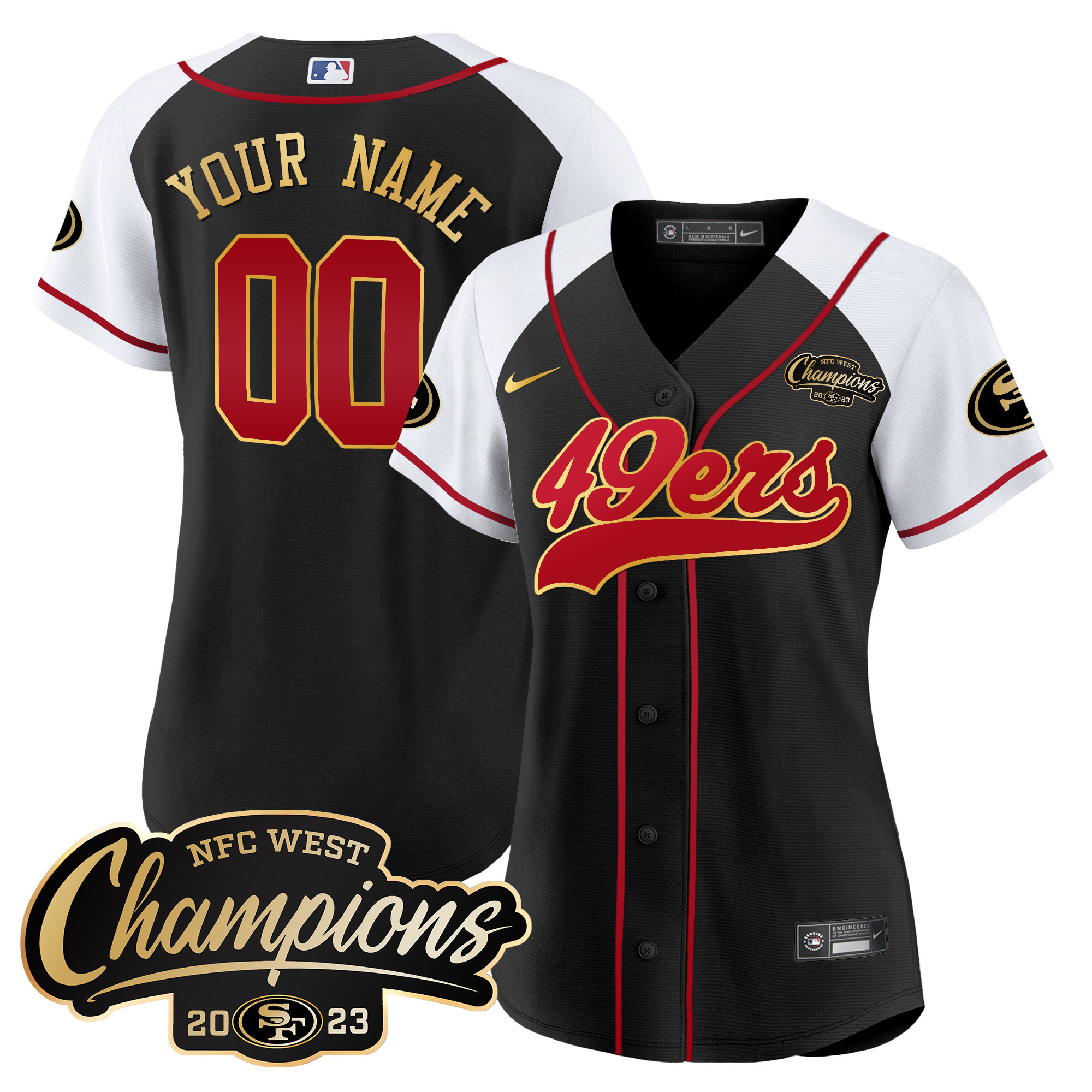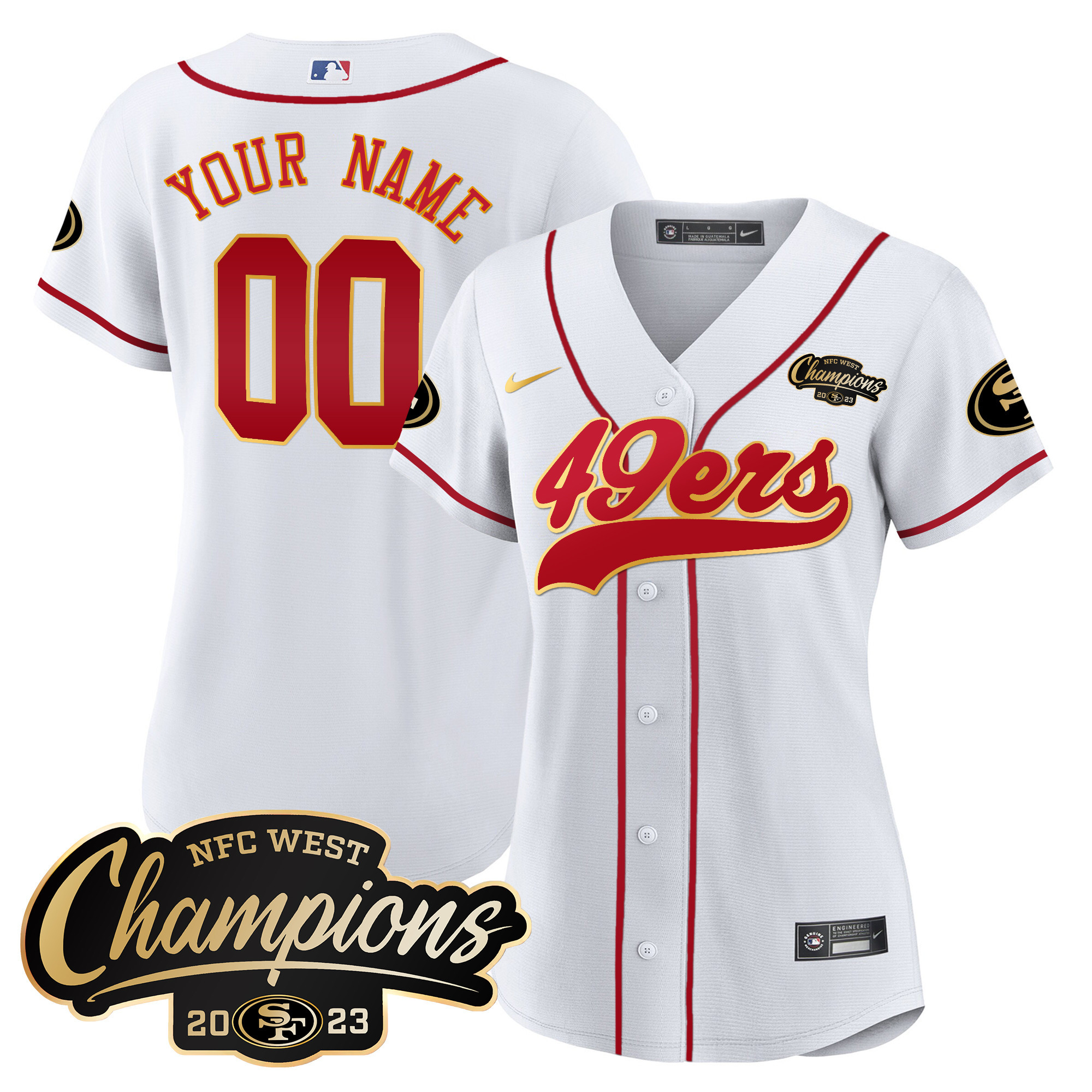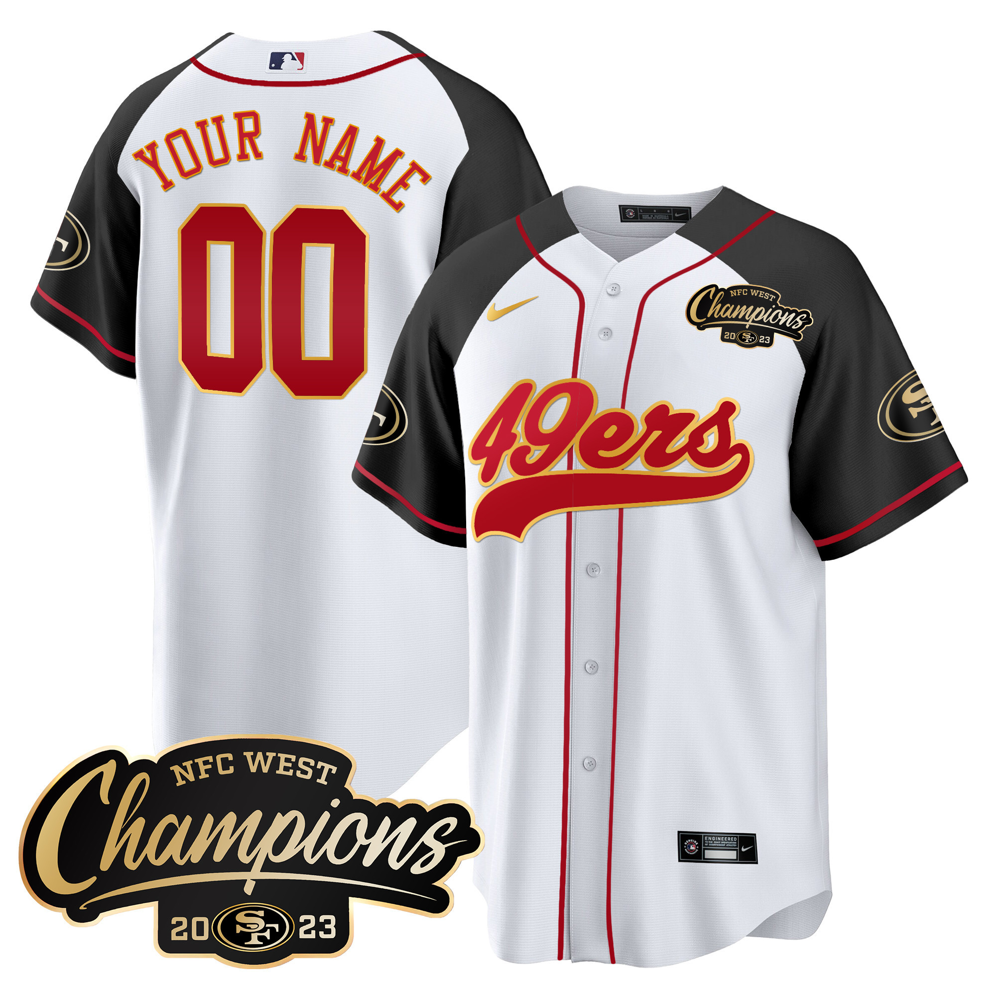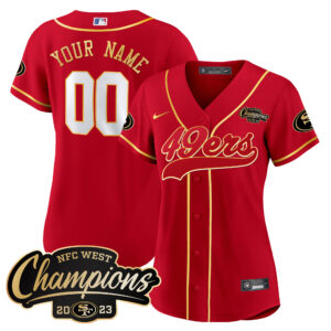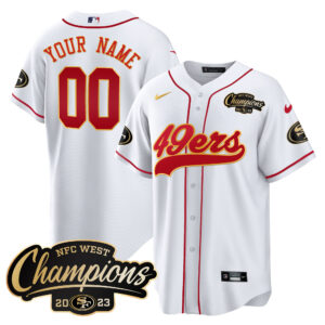 49ers 2023 NFC West Champions Baseball Gold Trim Custom Jersey – All Stitched