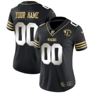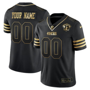 49ers 75th Anniversary Patch Vapor Gold Custom Jersey – All Stitched