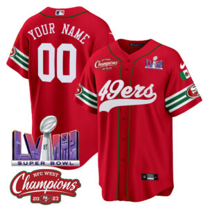 49ers Mexico NFC West Champions & Super Bowl LVIII Patch Baseball Custom Jersey – All Stitched