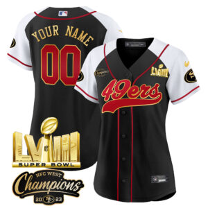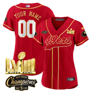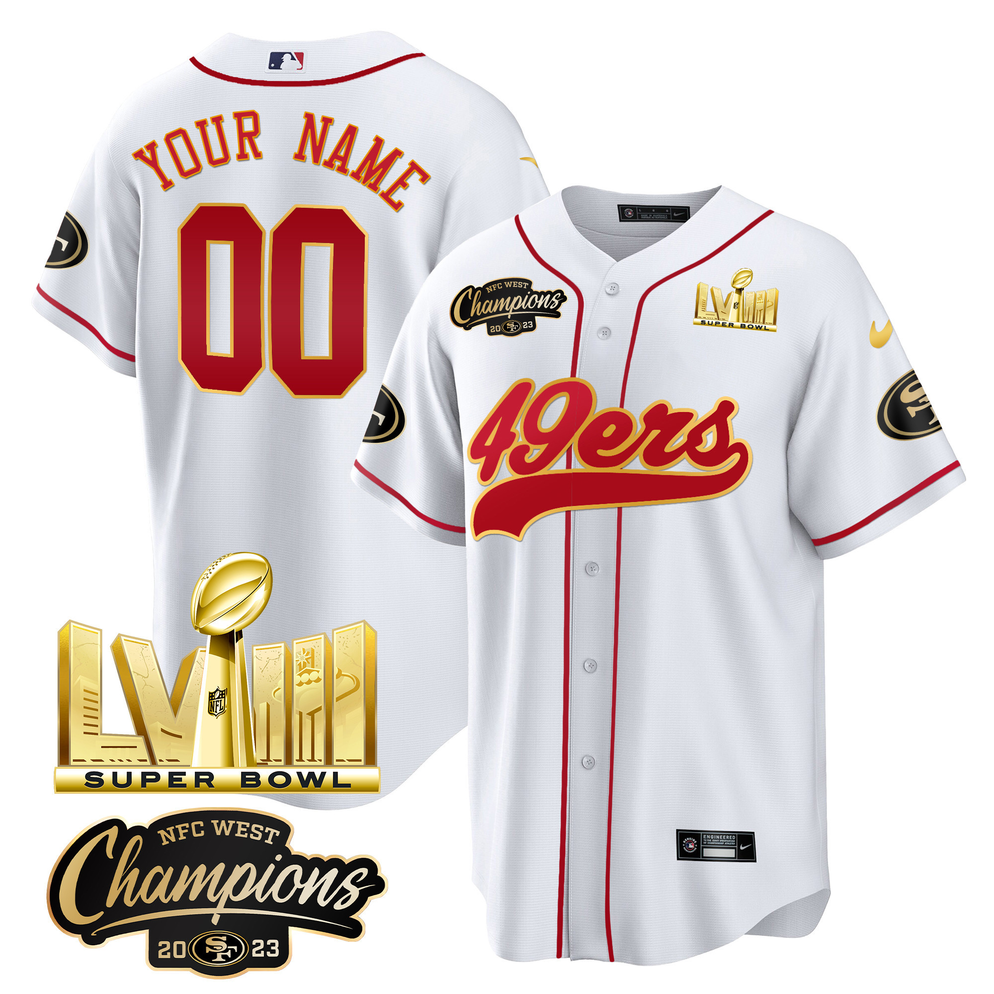 49ers NFC West Champions & Super Bowl LVIII Gold Patch Baseball Custom Jersey – All Stitched