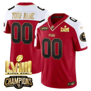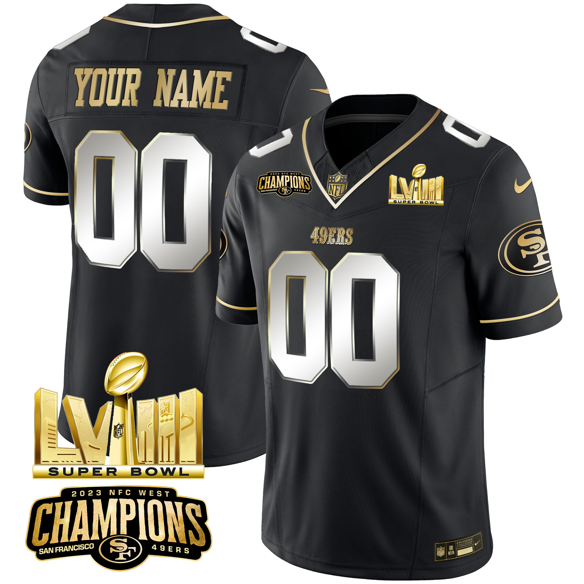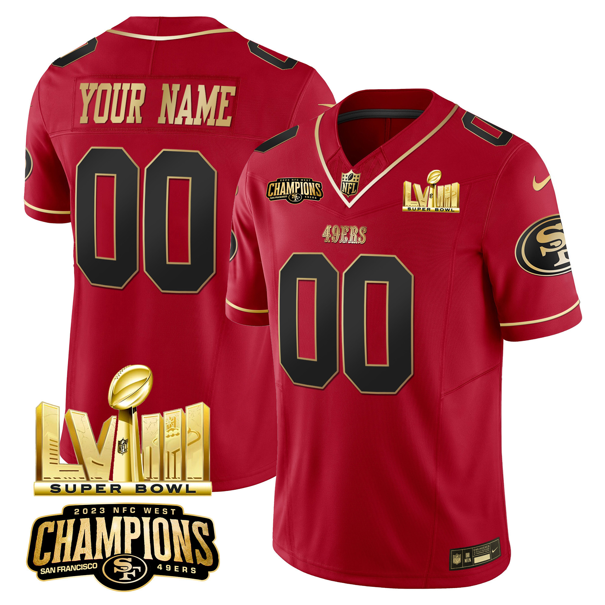 49ers NFC West Champions & Super Bowl LVIII Gold Patch Vapor Custom Jersey – All Stitched