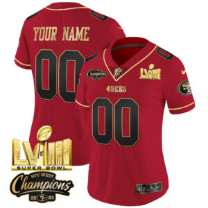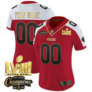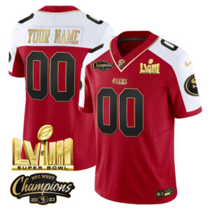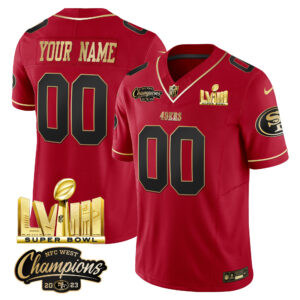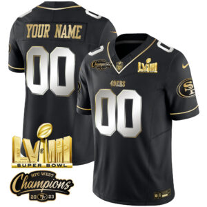 49ers NFC West Champions & Super Bowl LVIII Gold Patch Vapor Custom Jersey V2 – All Stitched