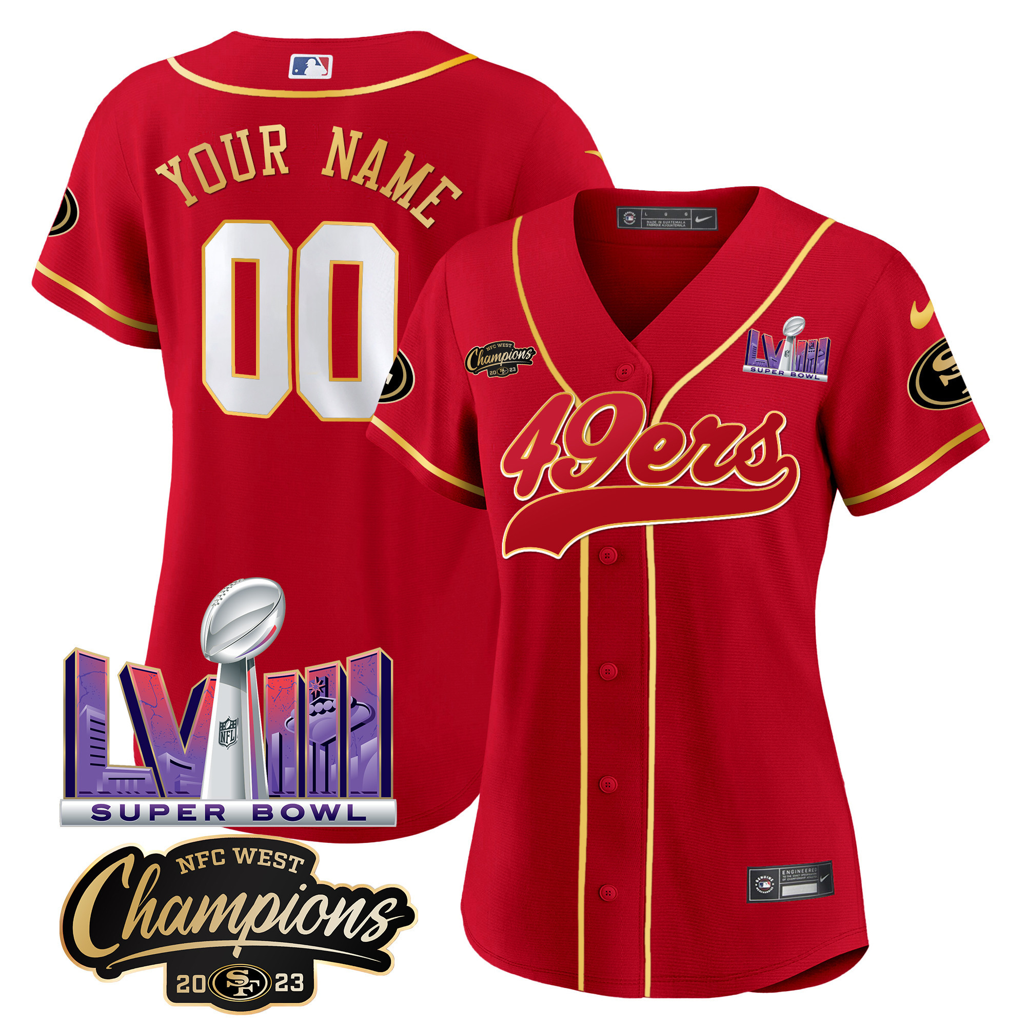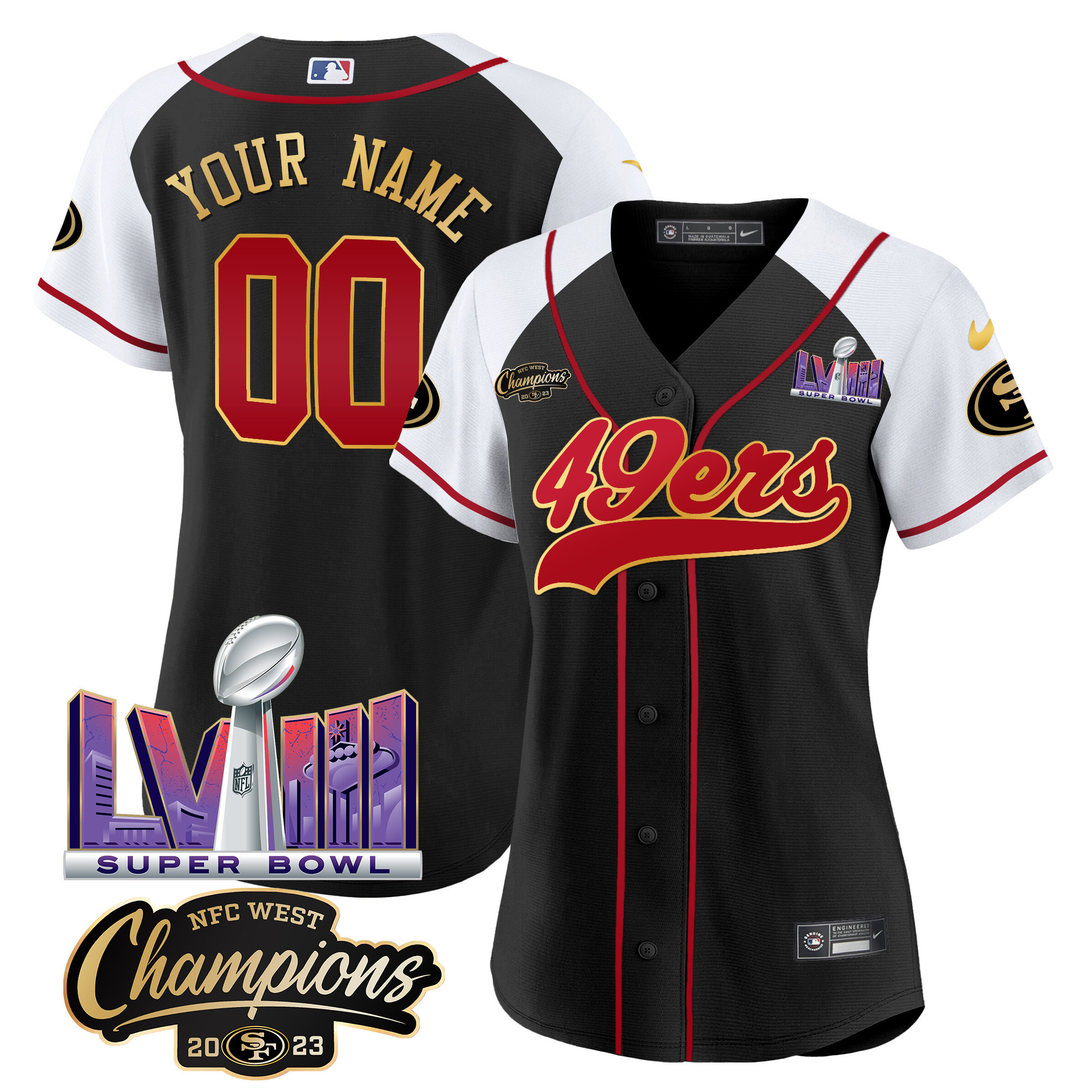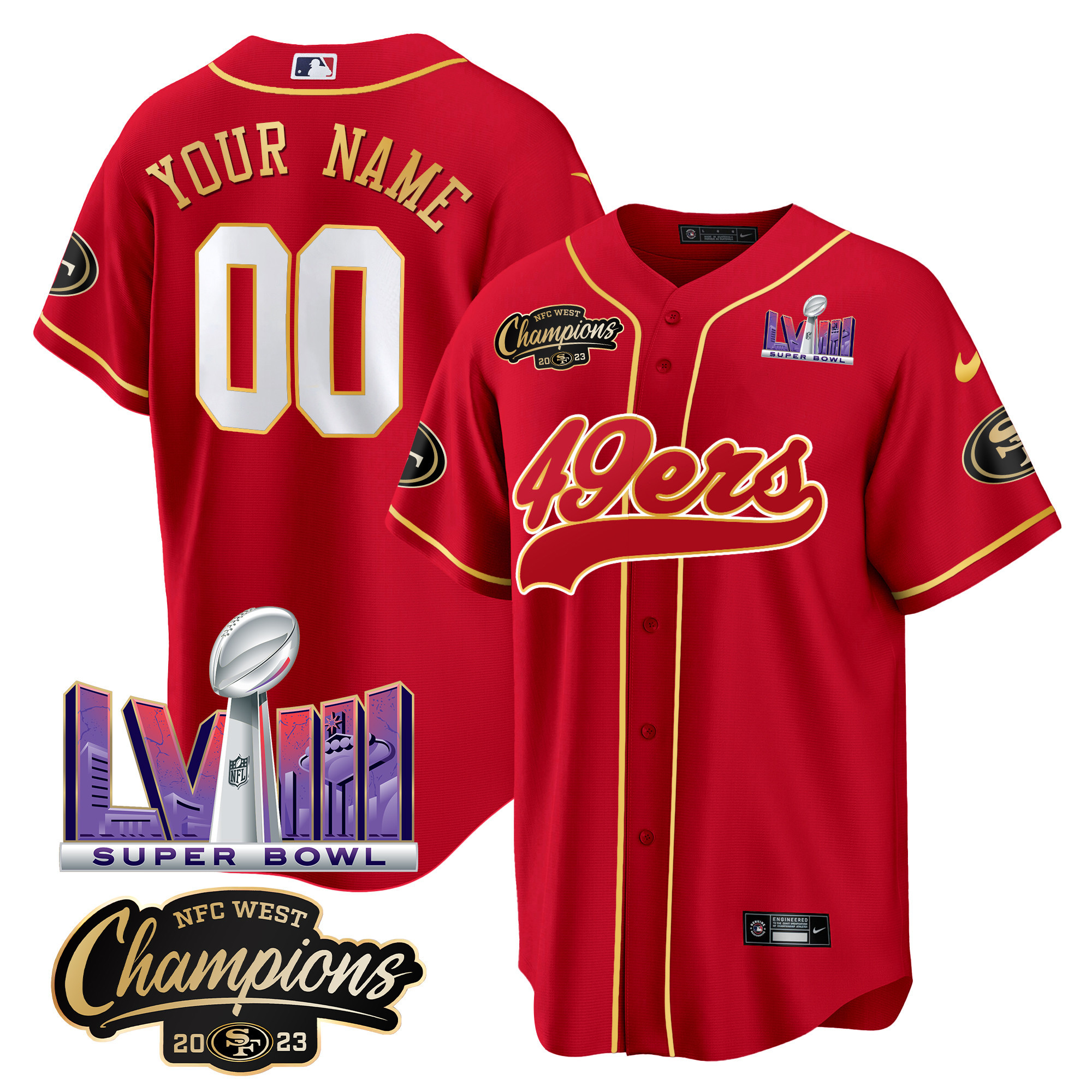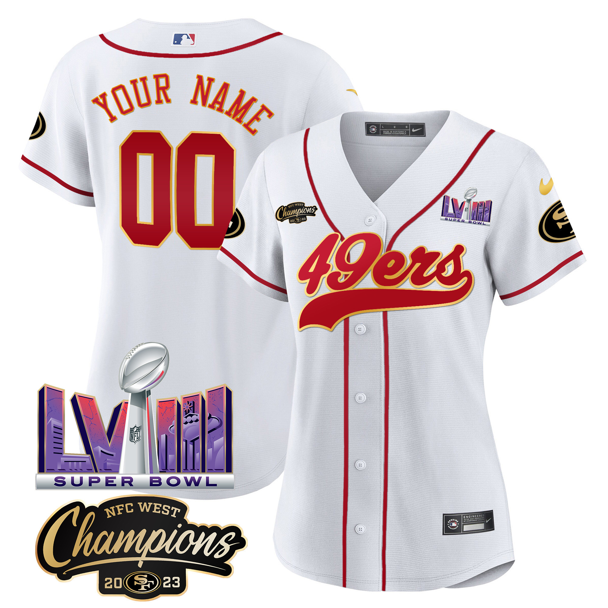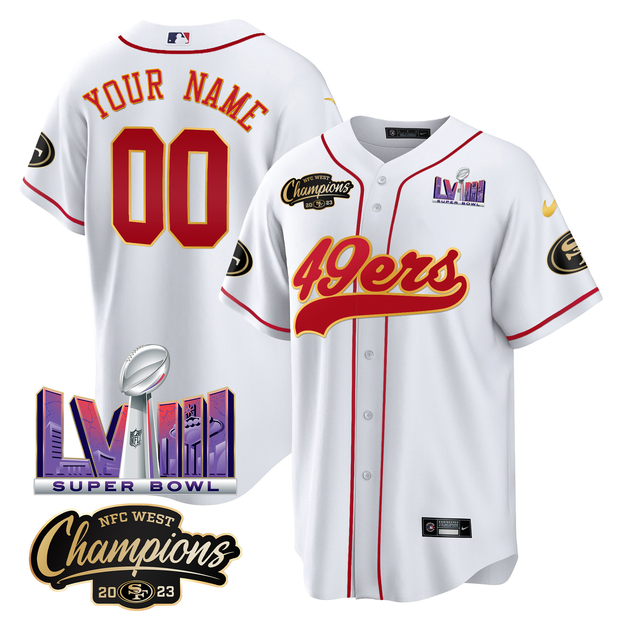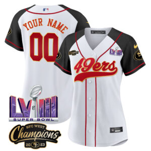 49ers NFC West Champions & Super Bowl LVIII Patch Baseball Custom Jersey – All Stitched
