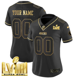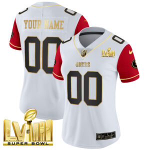 49ers Super Bowl LVIII Gold Patch Vapor Custom Jersey V2 – All Stitched