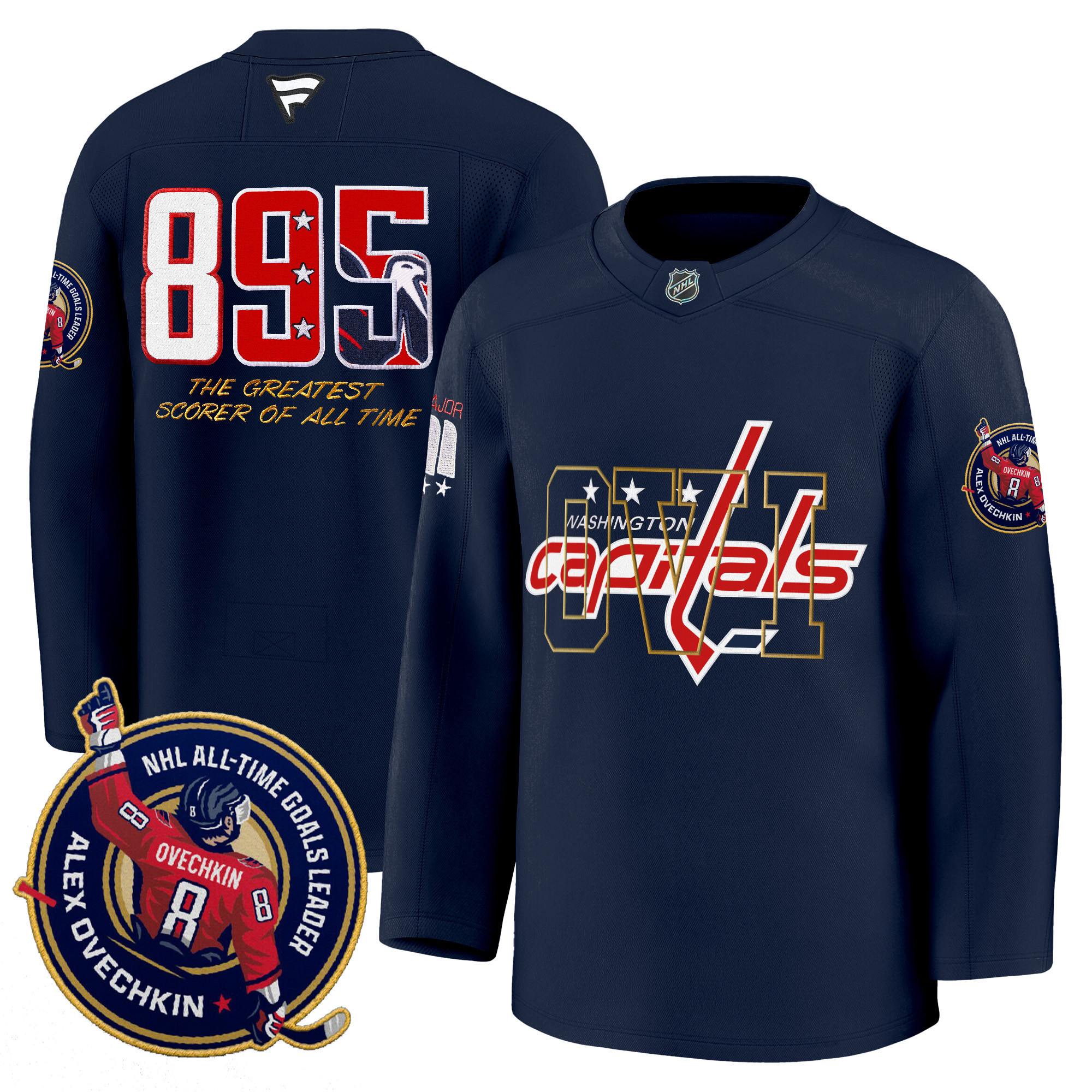 Alex Ovechkin Washington Capitals All-Time Goals Leader Patch Premium Jersey