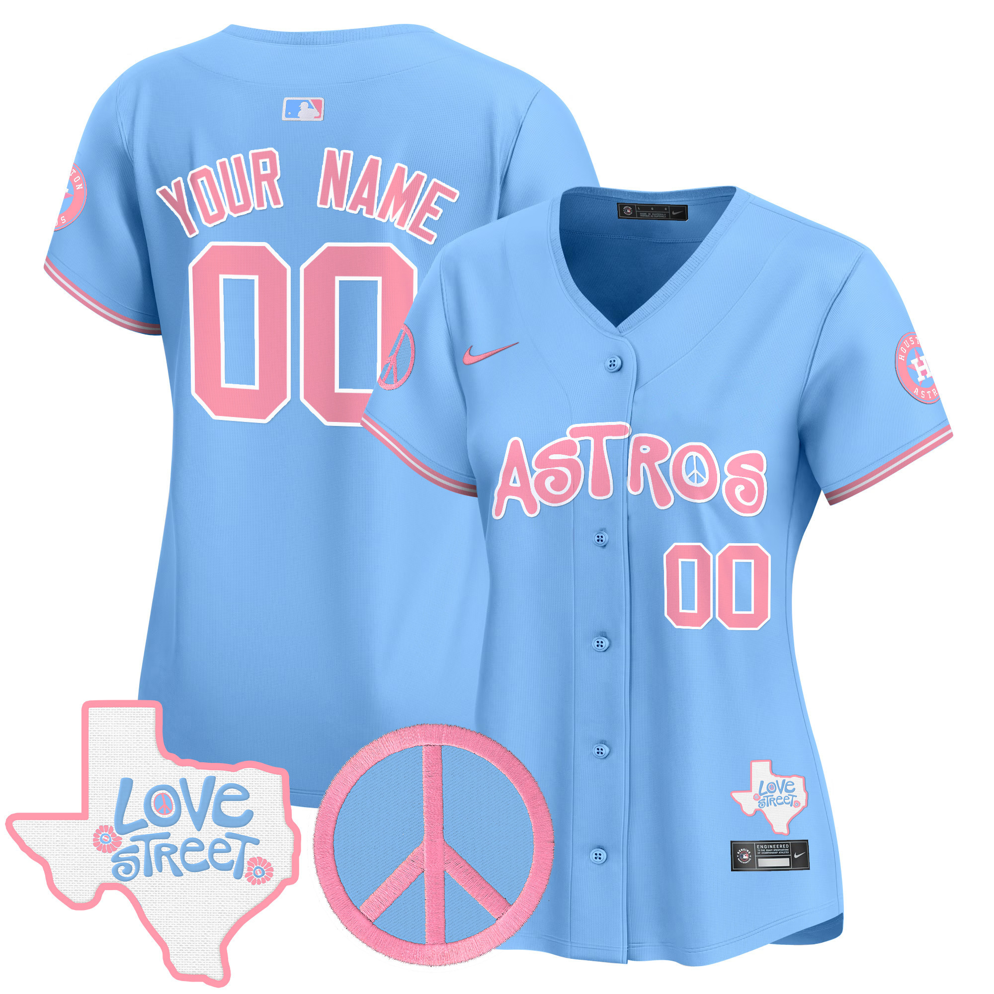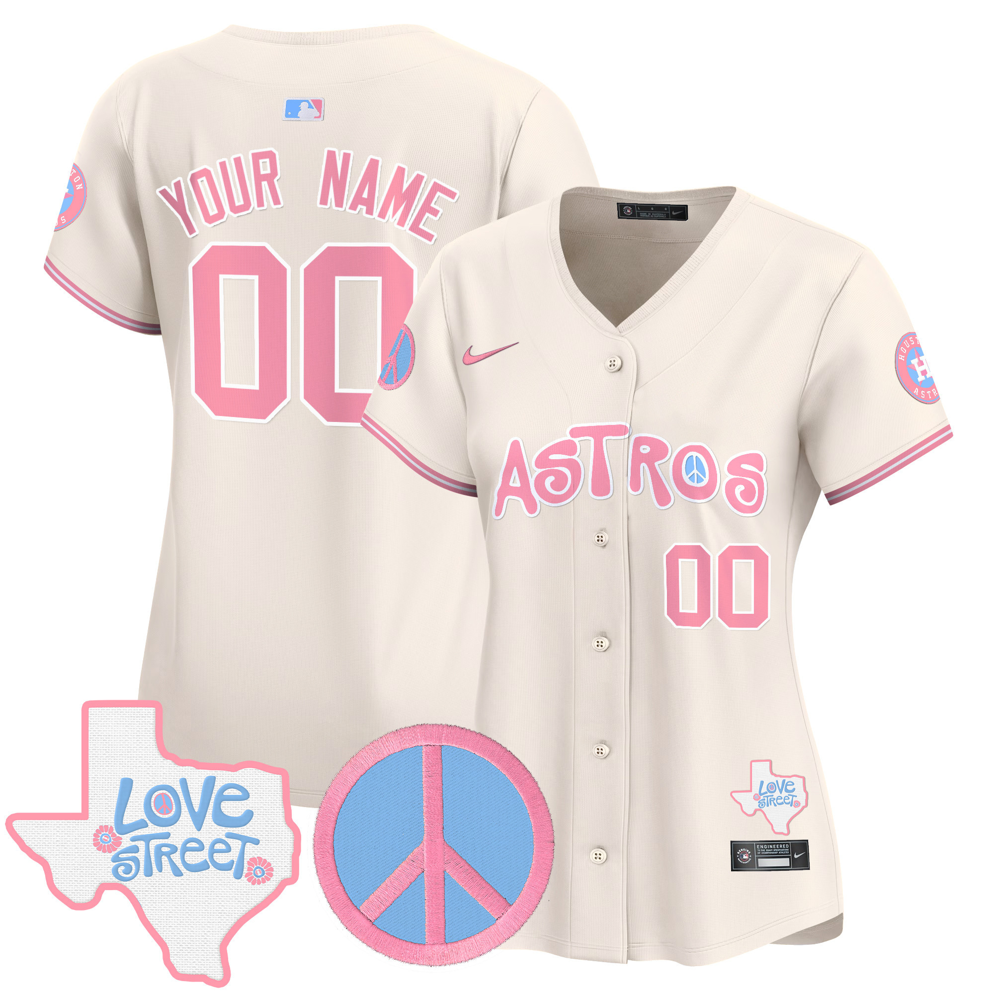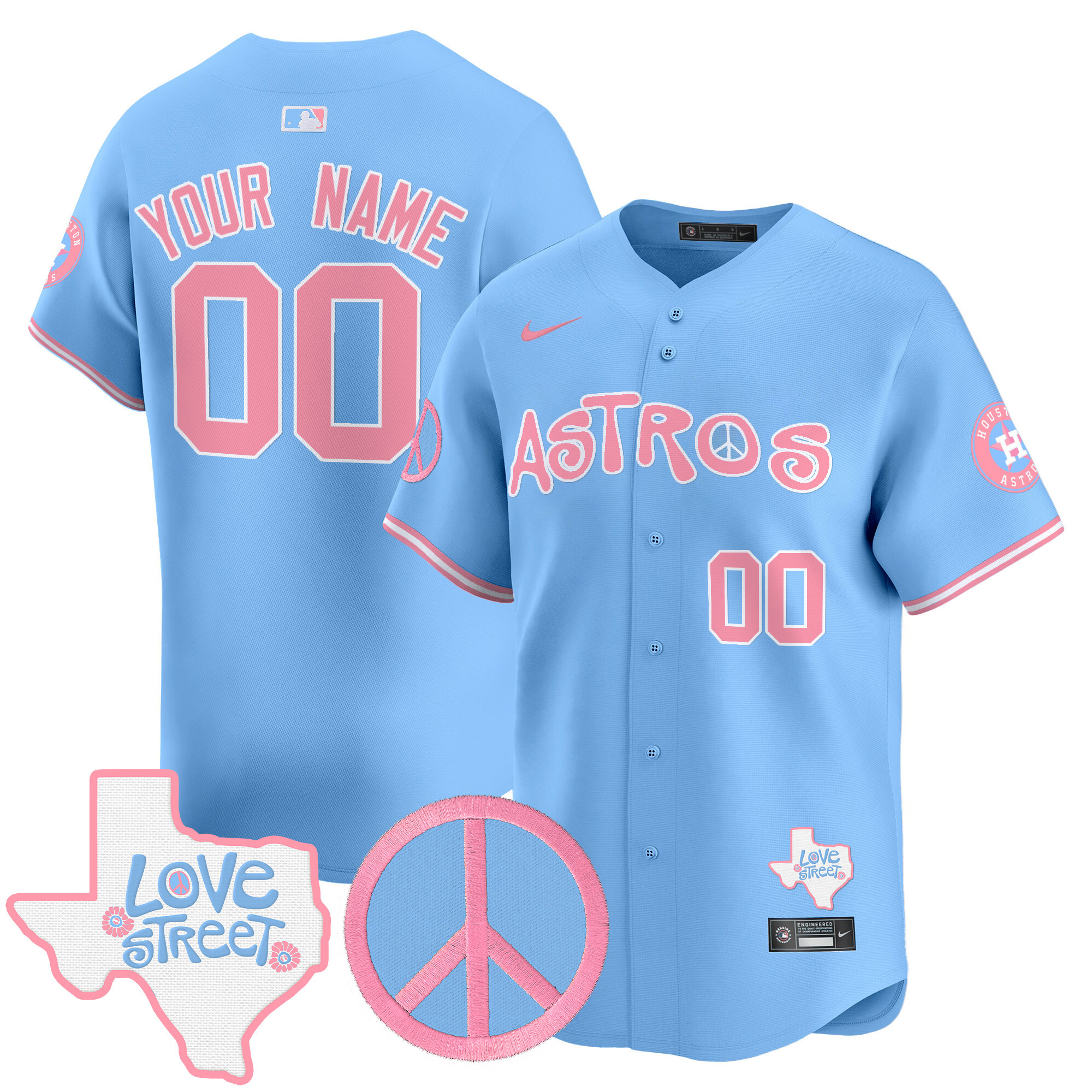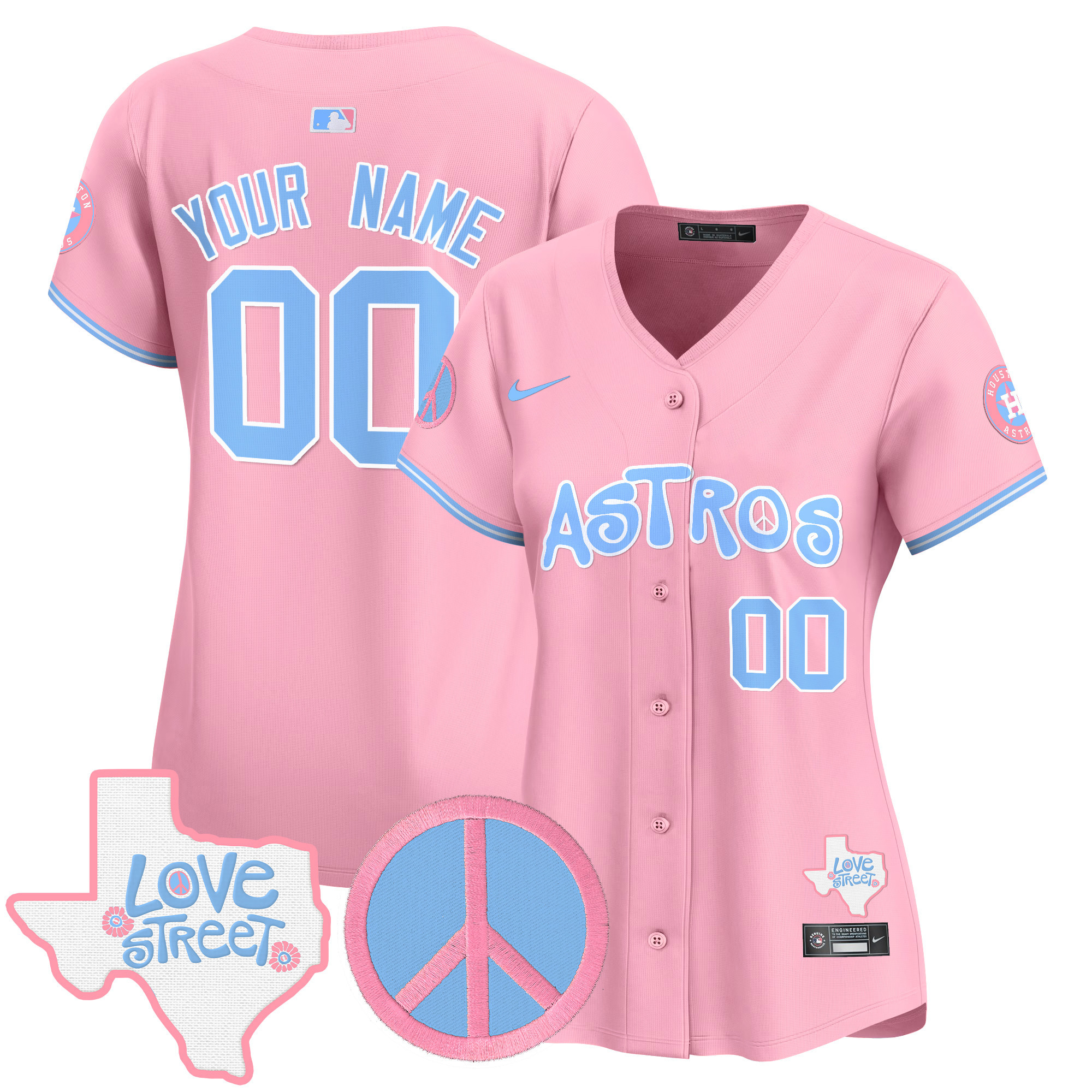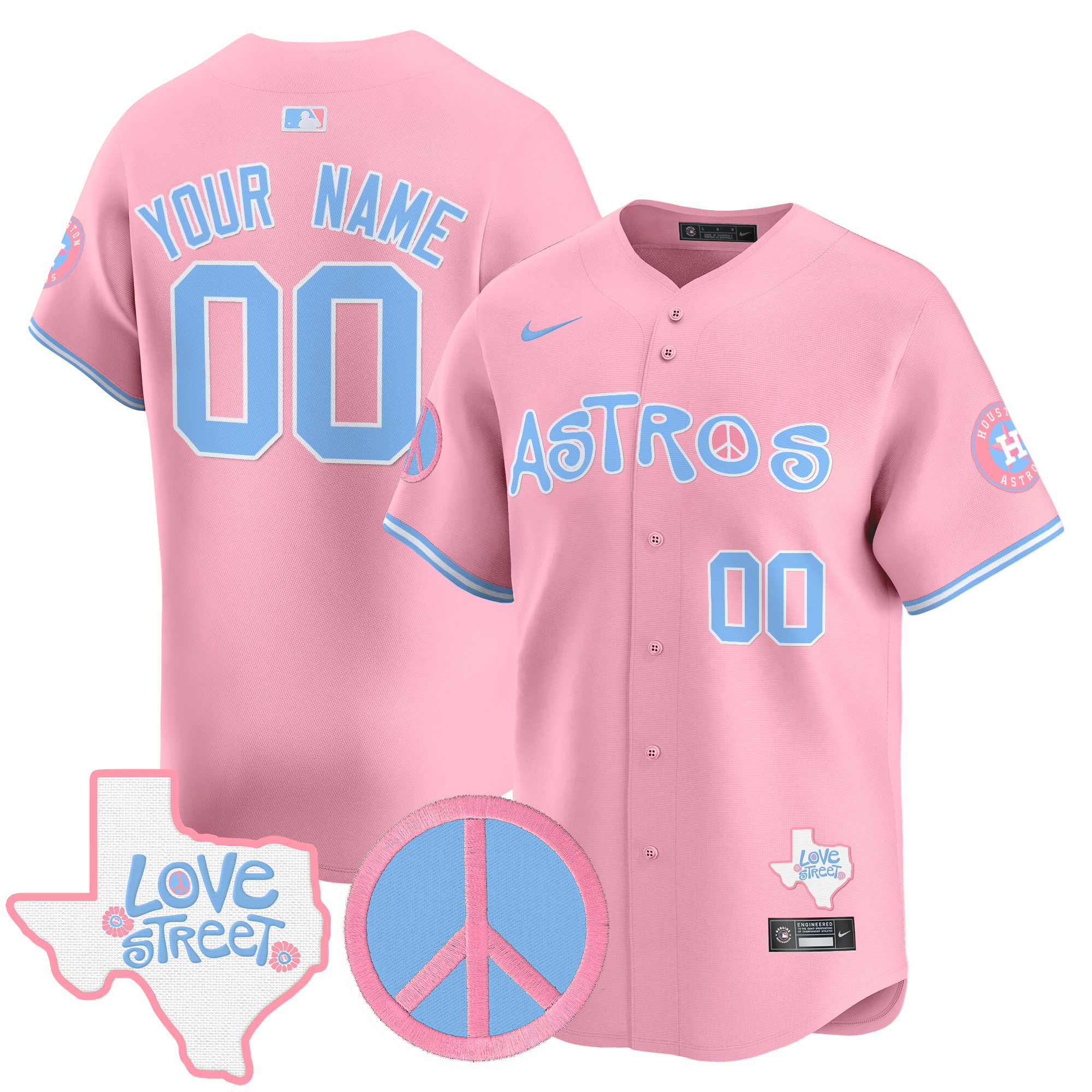 Astros Love Street & Peace Sign Patch Bubblegum Pink Vapor Premier Limited Custom Jersey – All Stitched