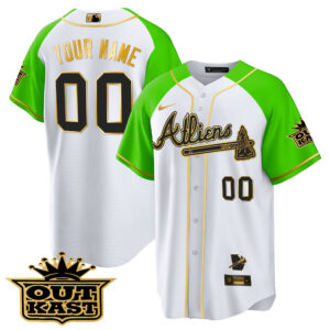 Atlanta Braves Atliens Gold Alternate Cool Base Custom Jersey – All Stitched