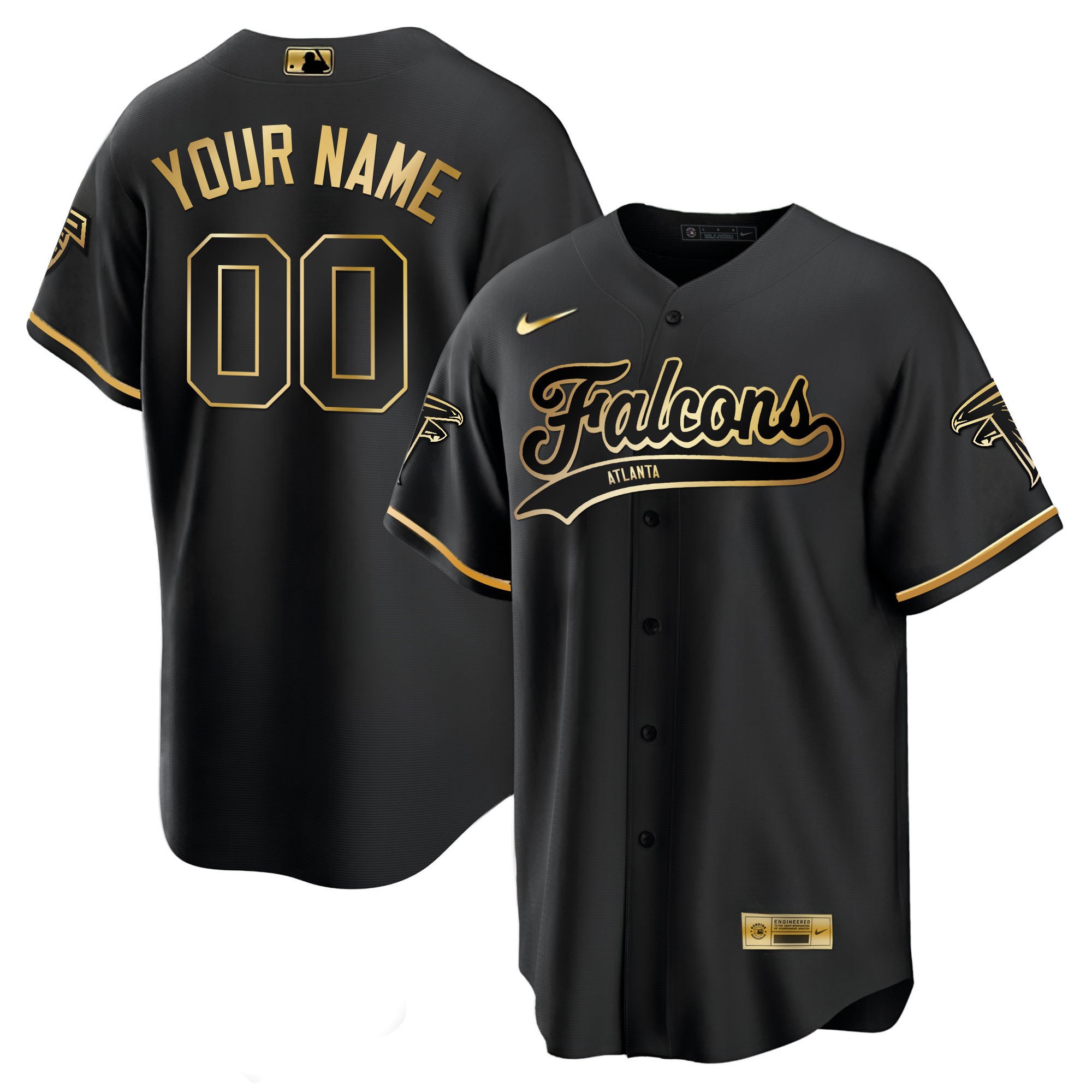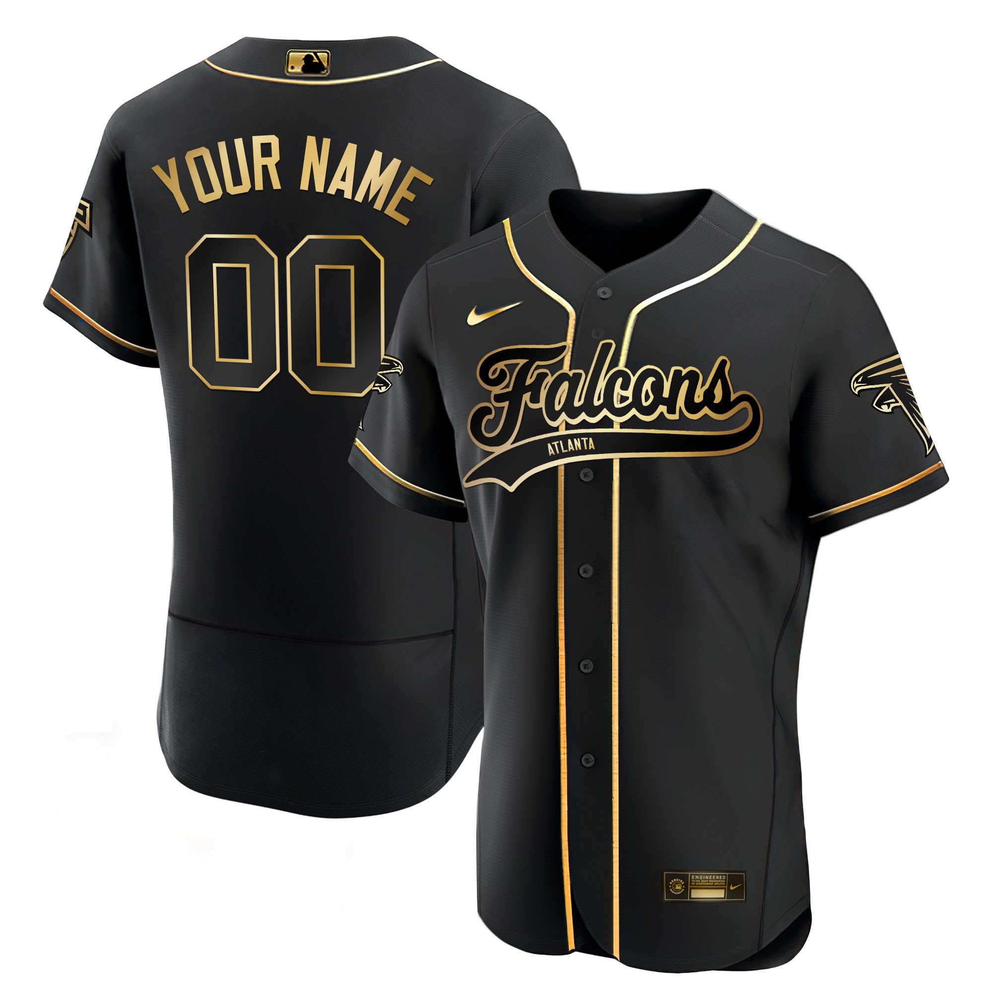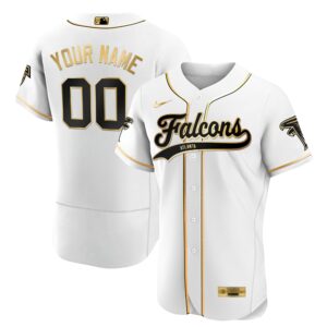 Atlanta Falcons Black Gold & White Gold Baseball Custom Jersey – All Stitched