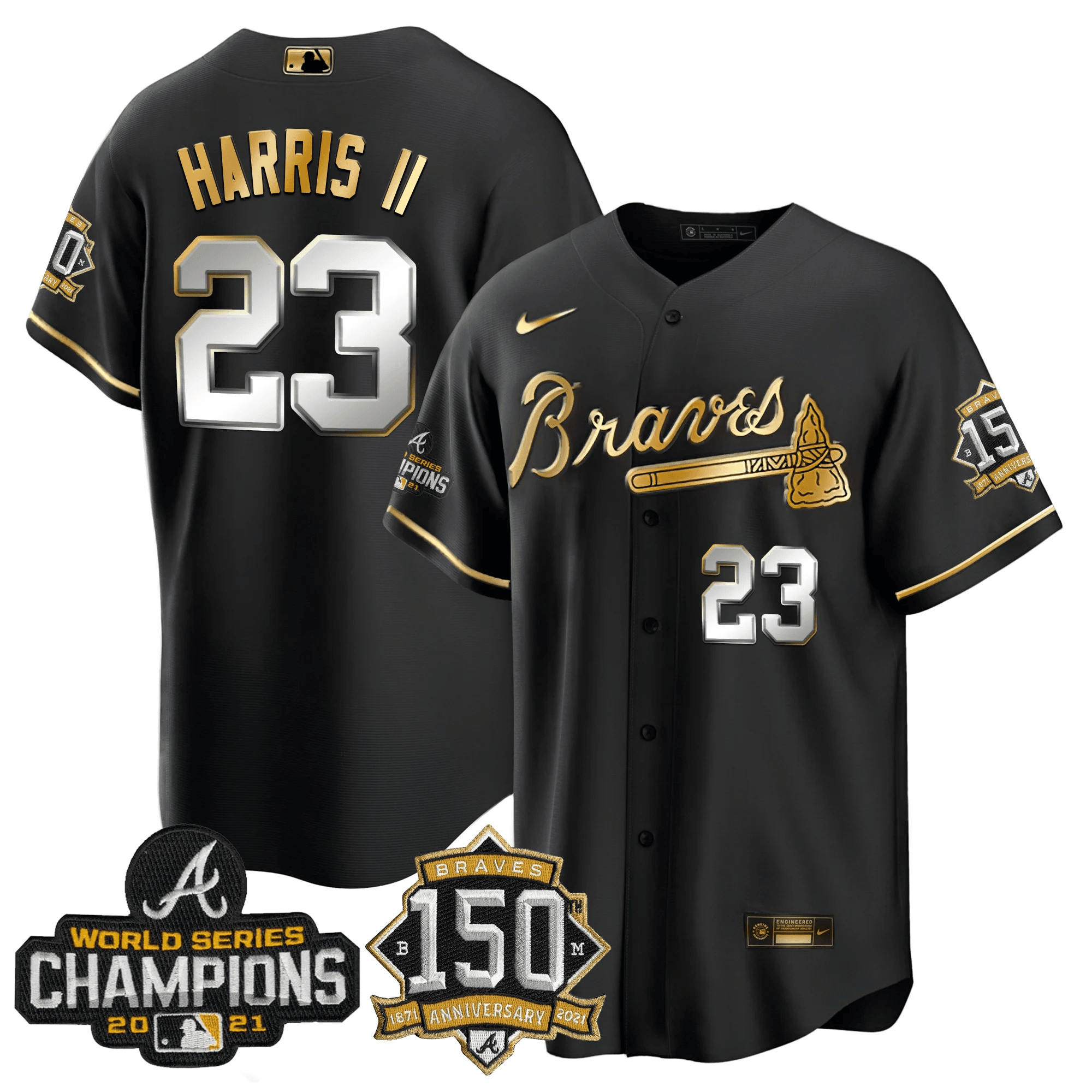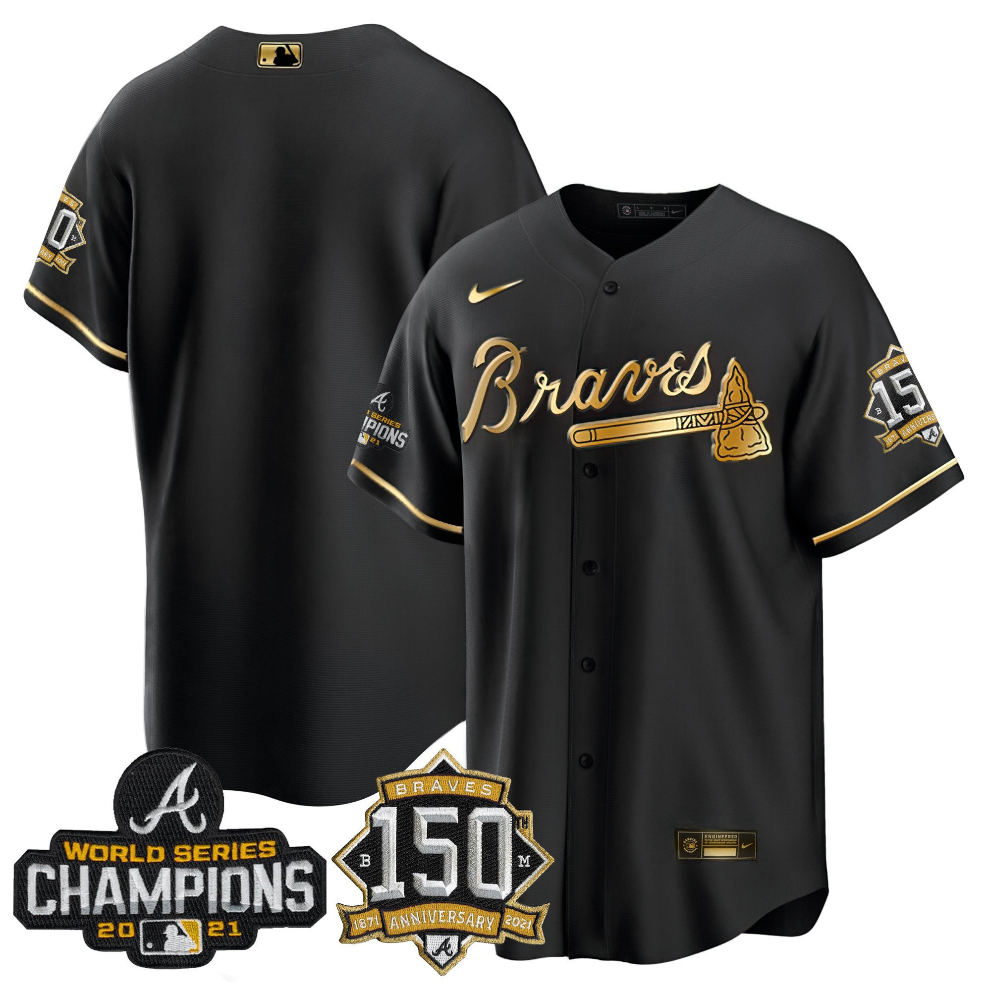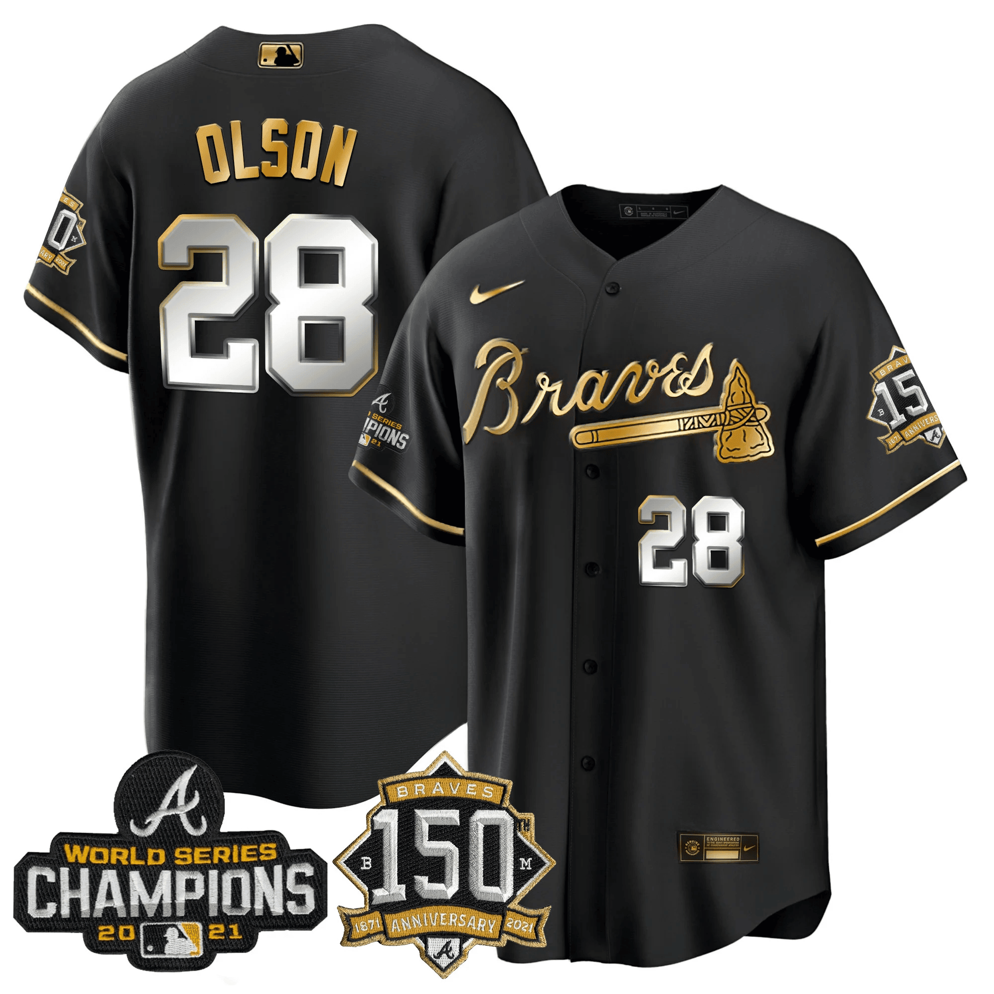 Braves World Series Champion Black Gold Cool Base Jersey – All Stitched