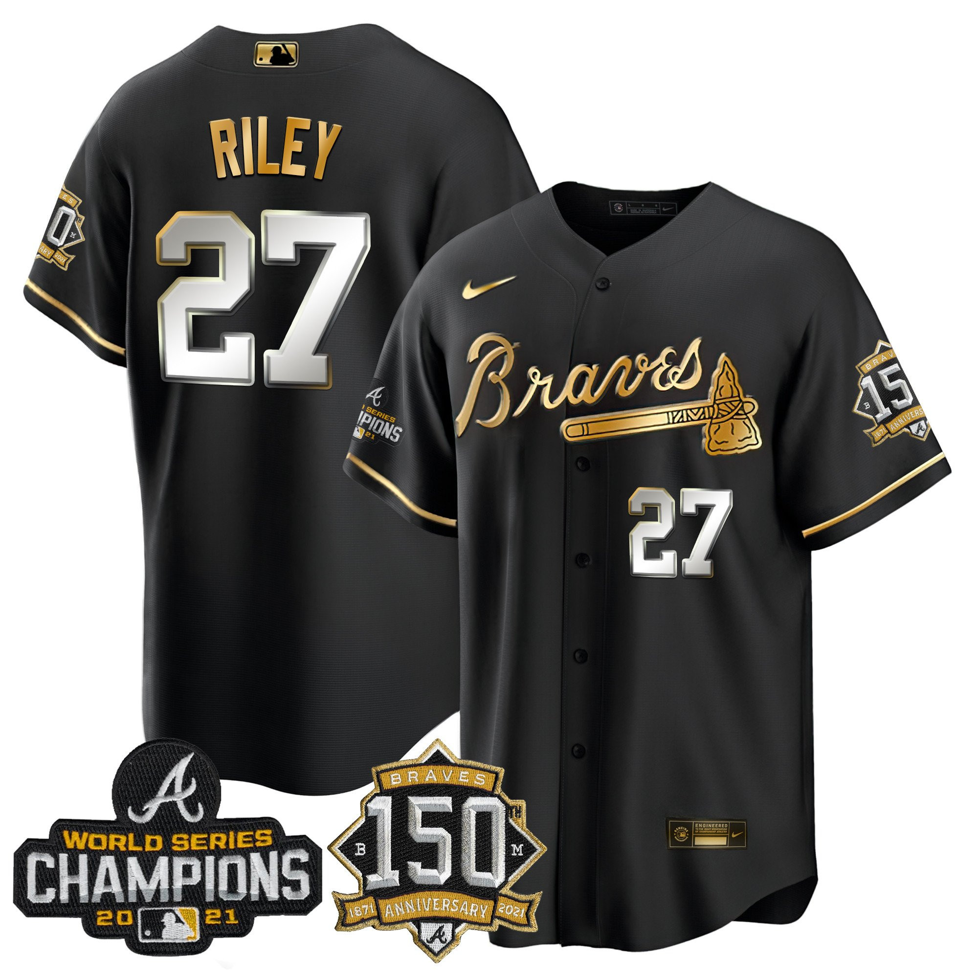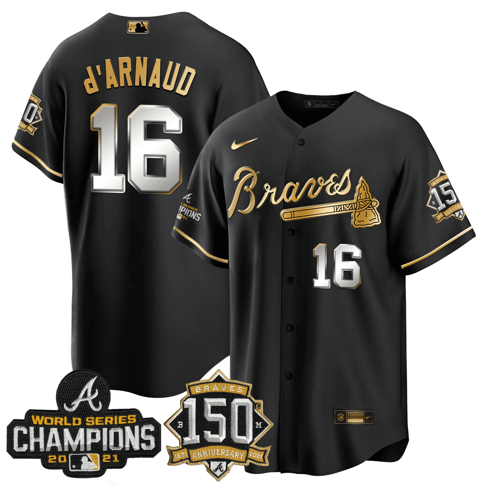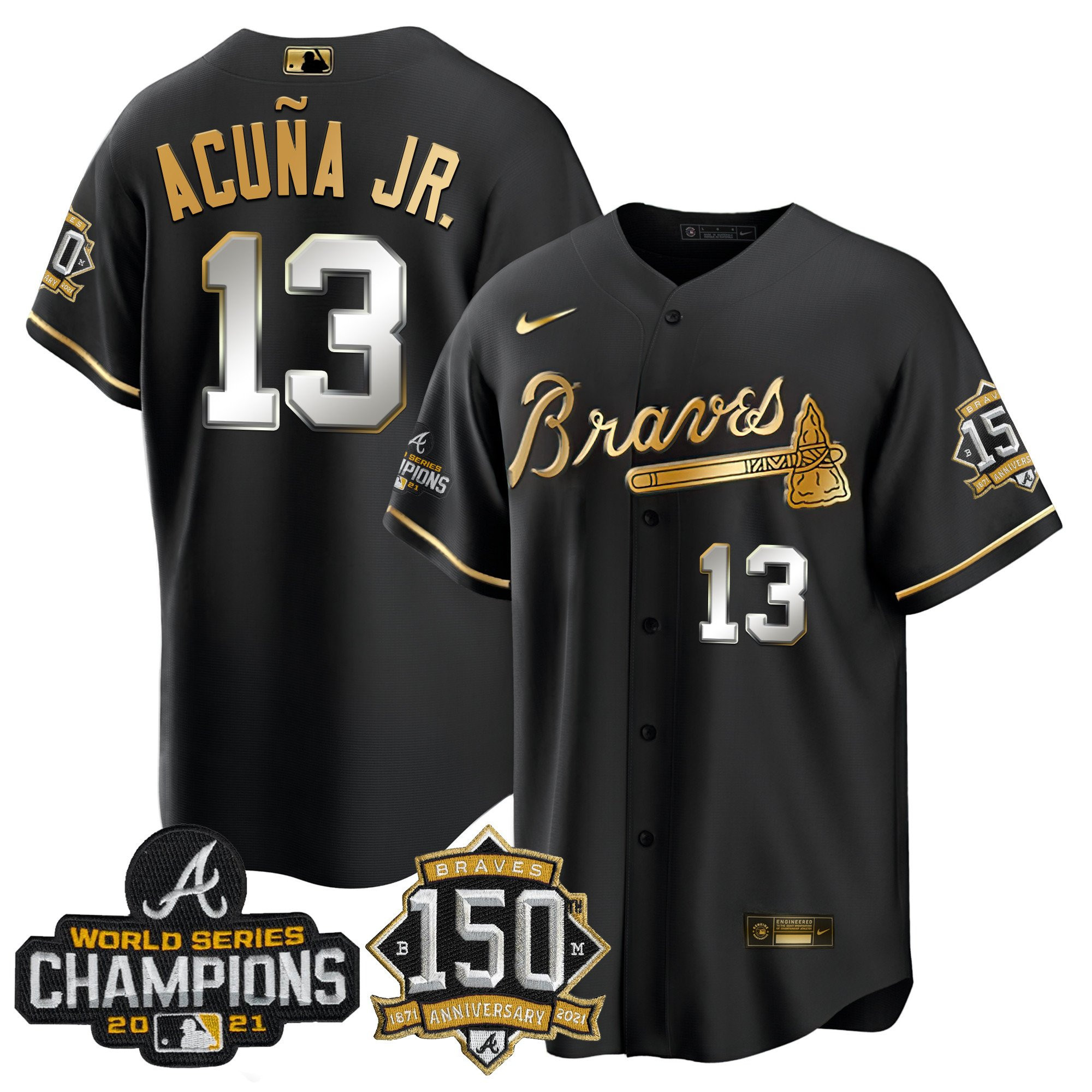 Braves World Series Champion Black Gold Cool Base Jersey – All Stitched