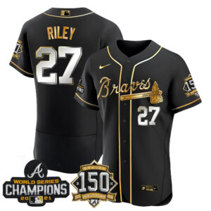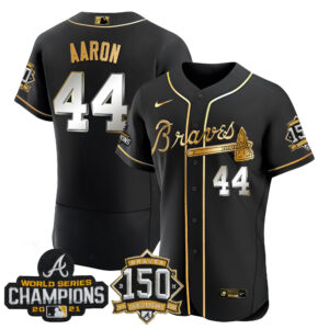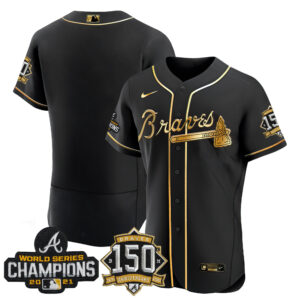 Braves World Series Champion Black Gold Flex Base Jersey – All Stitched