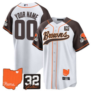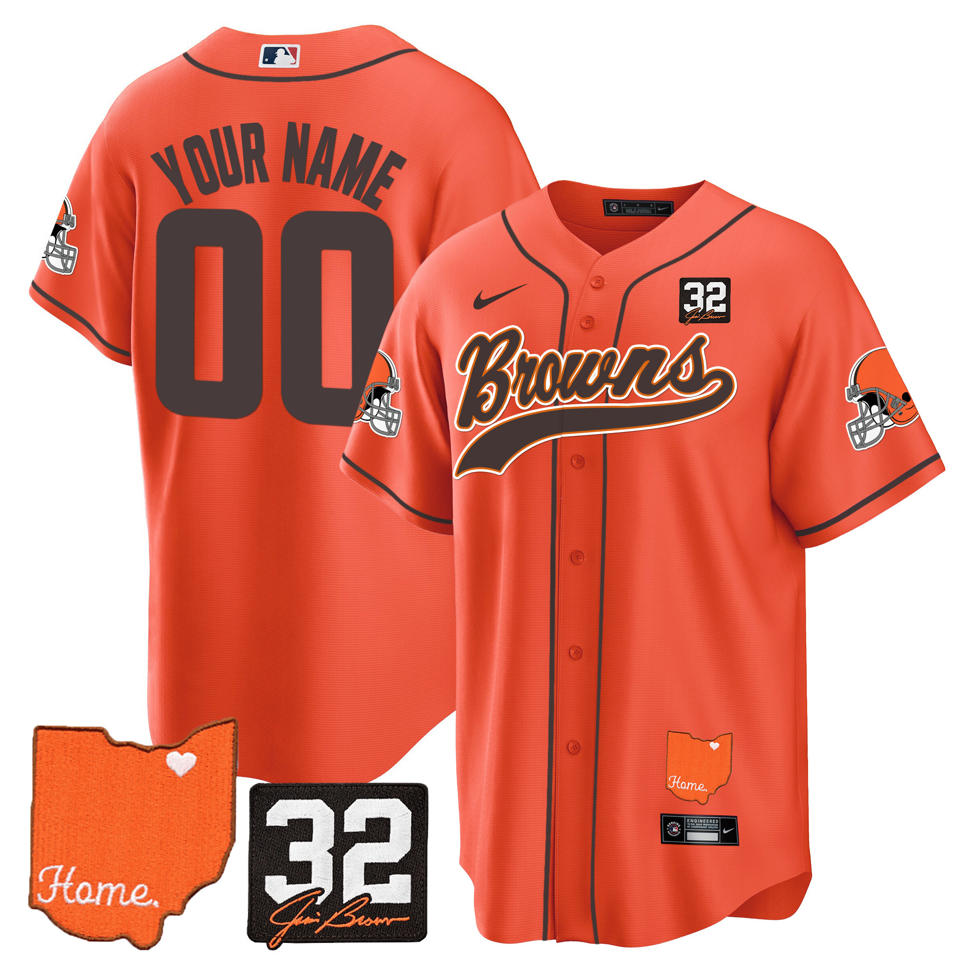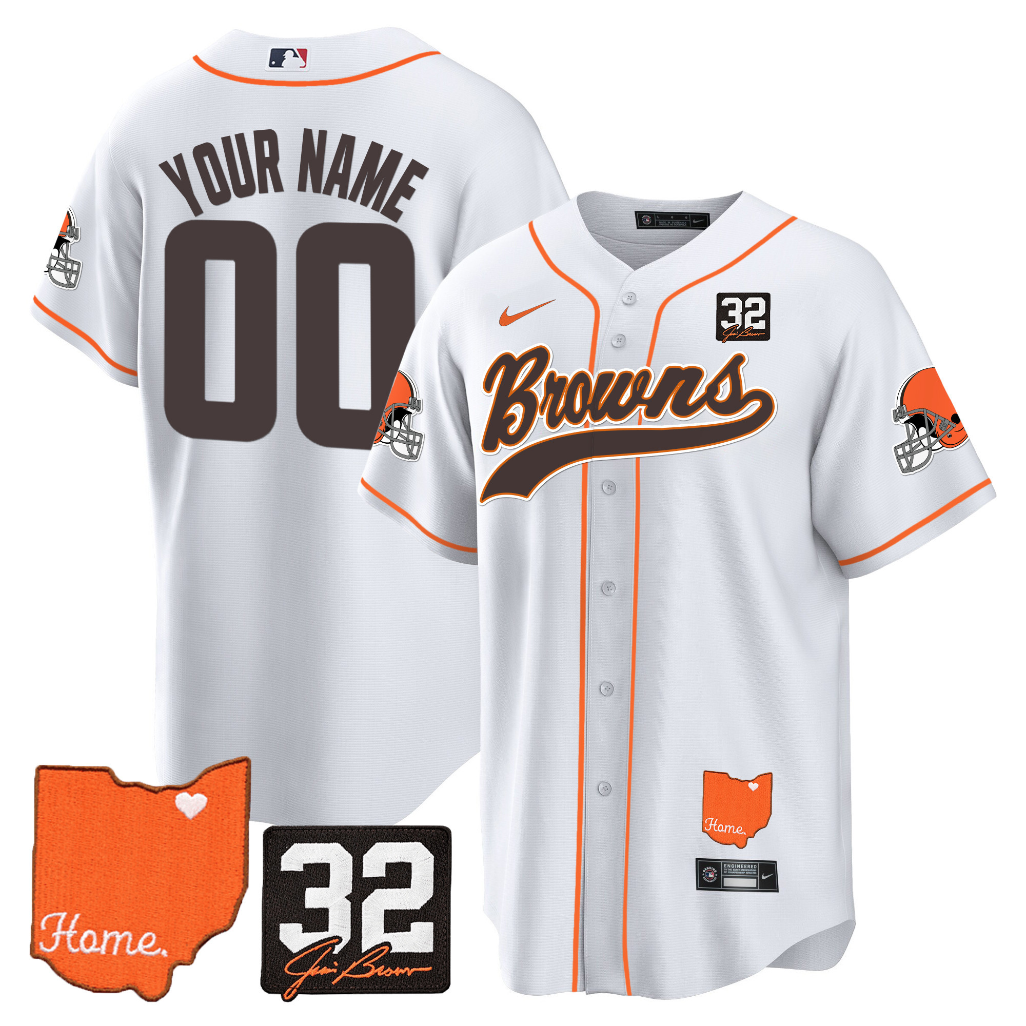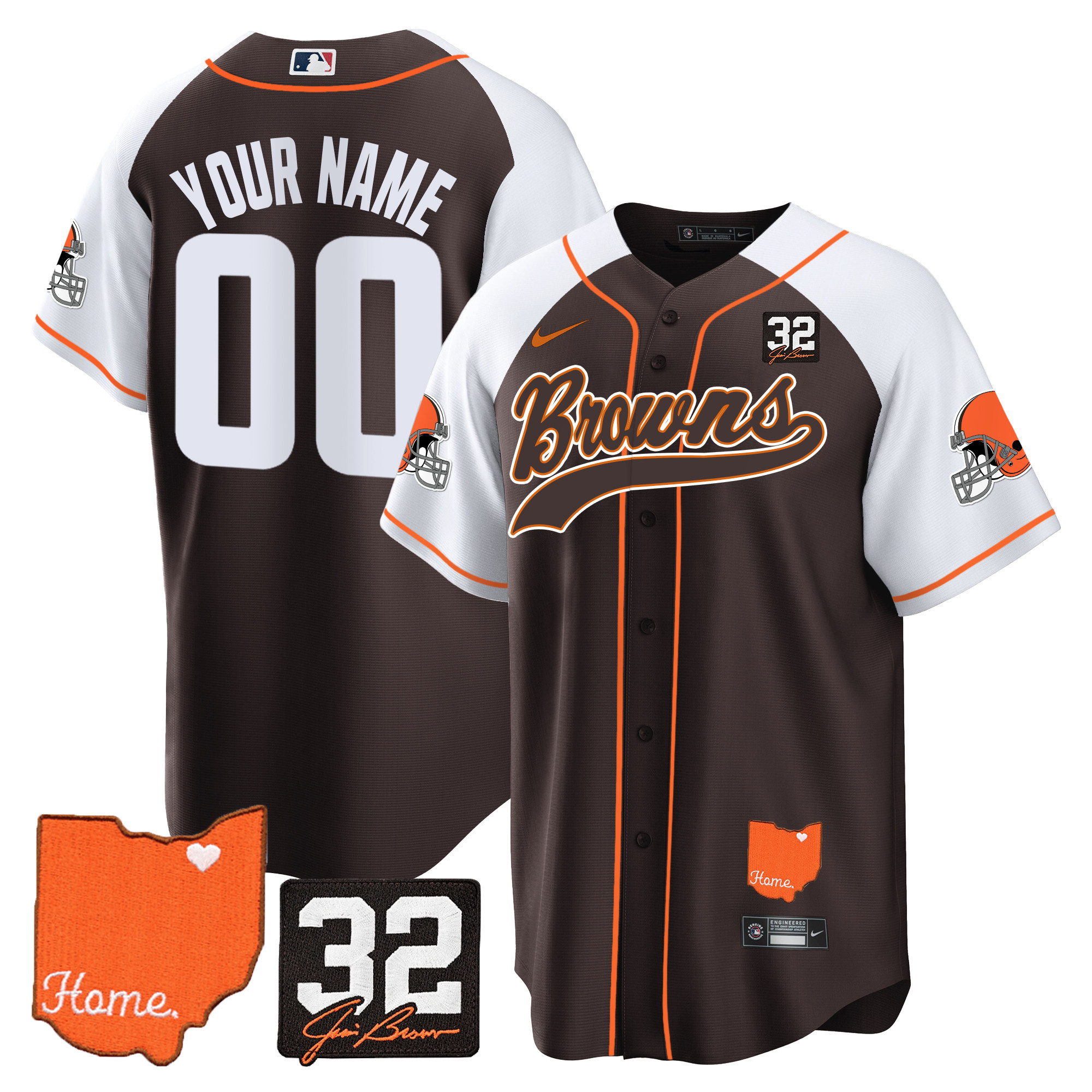 Browns #32 Jim Brown Memorial & Home Patch Baseball Custom Jersey – All Stitched