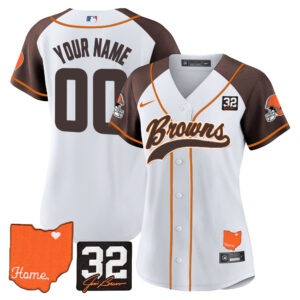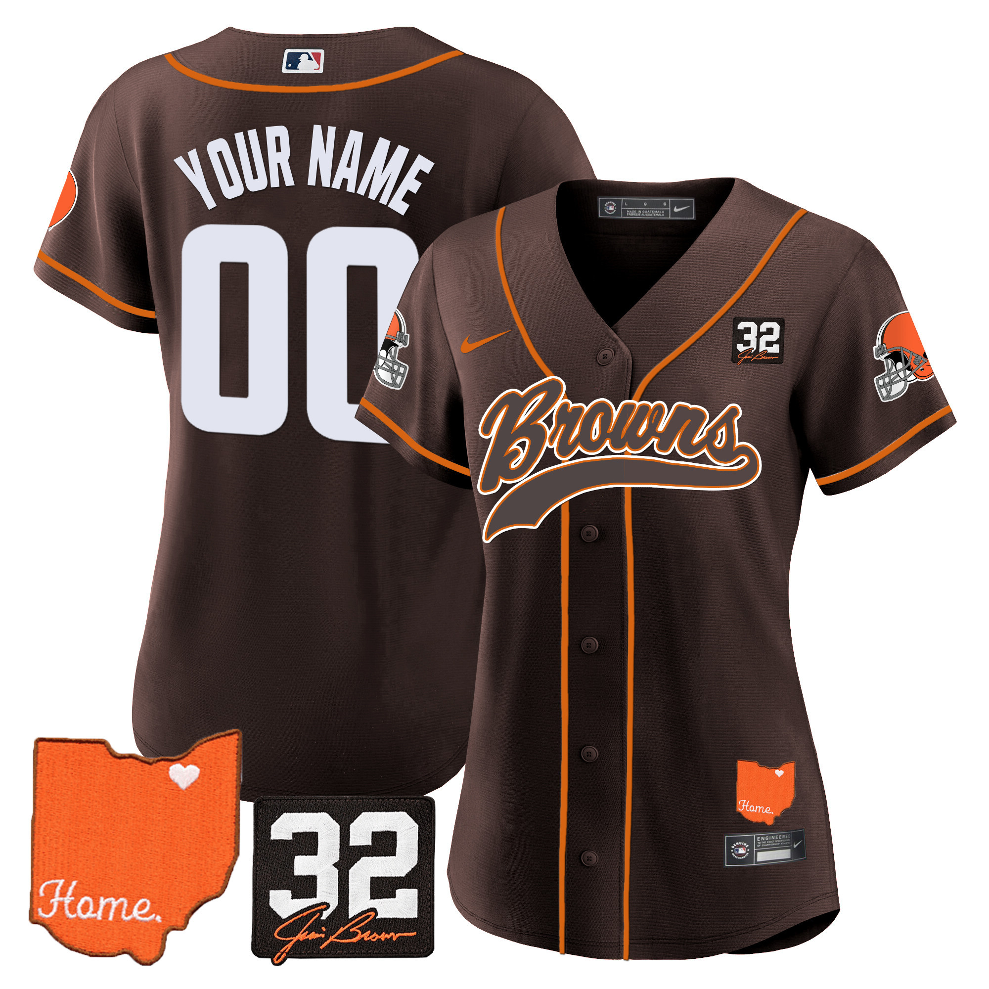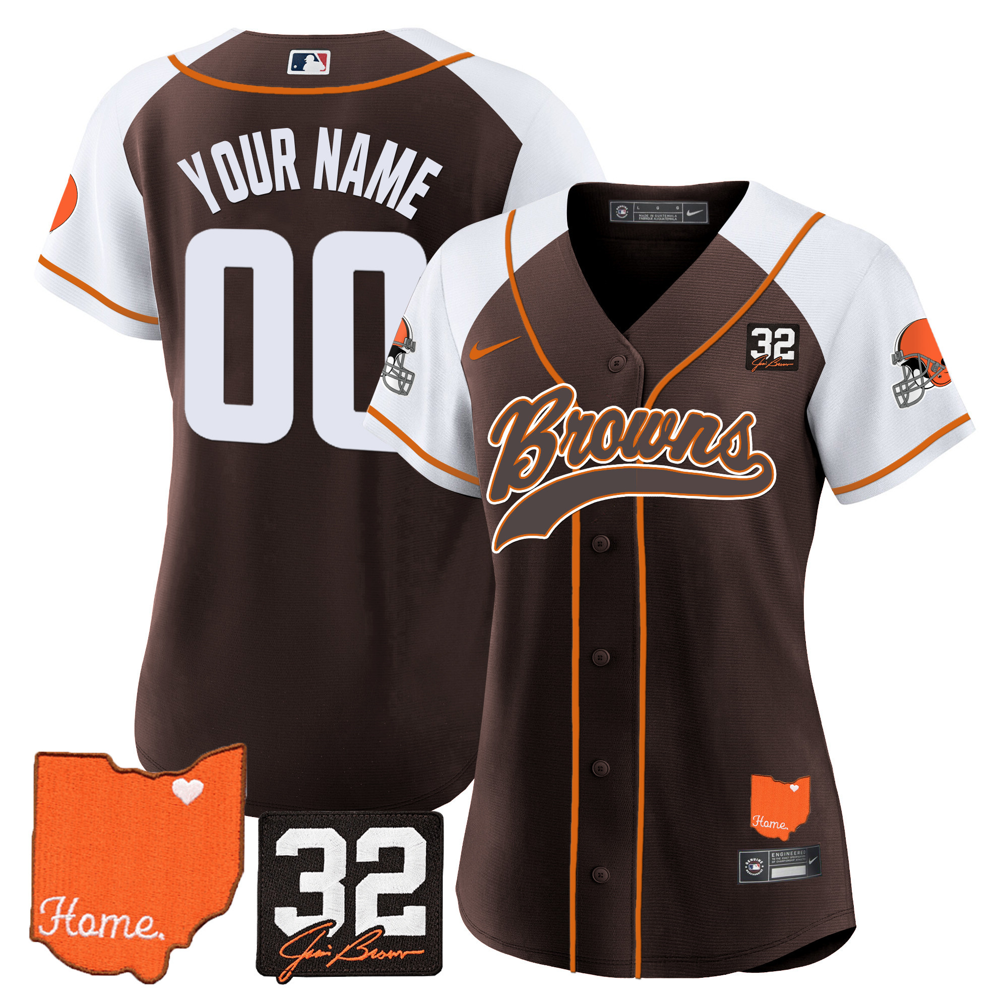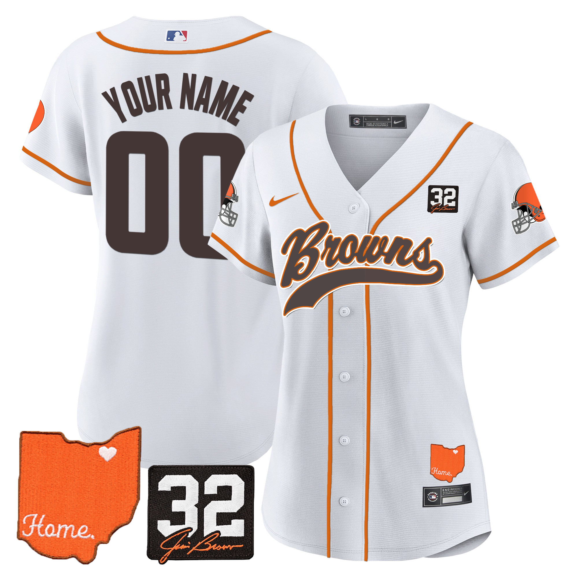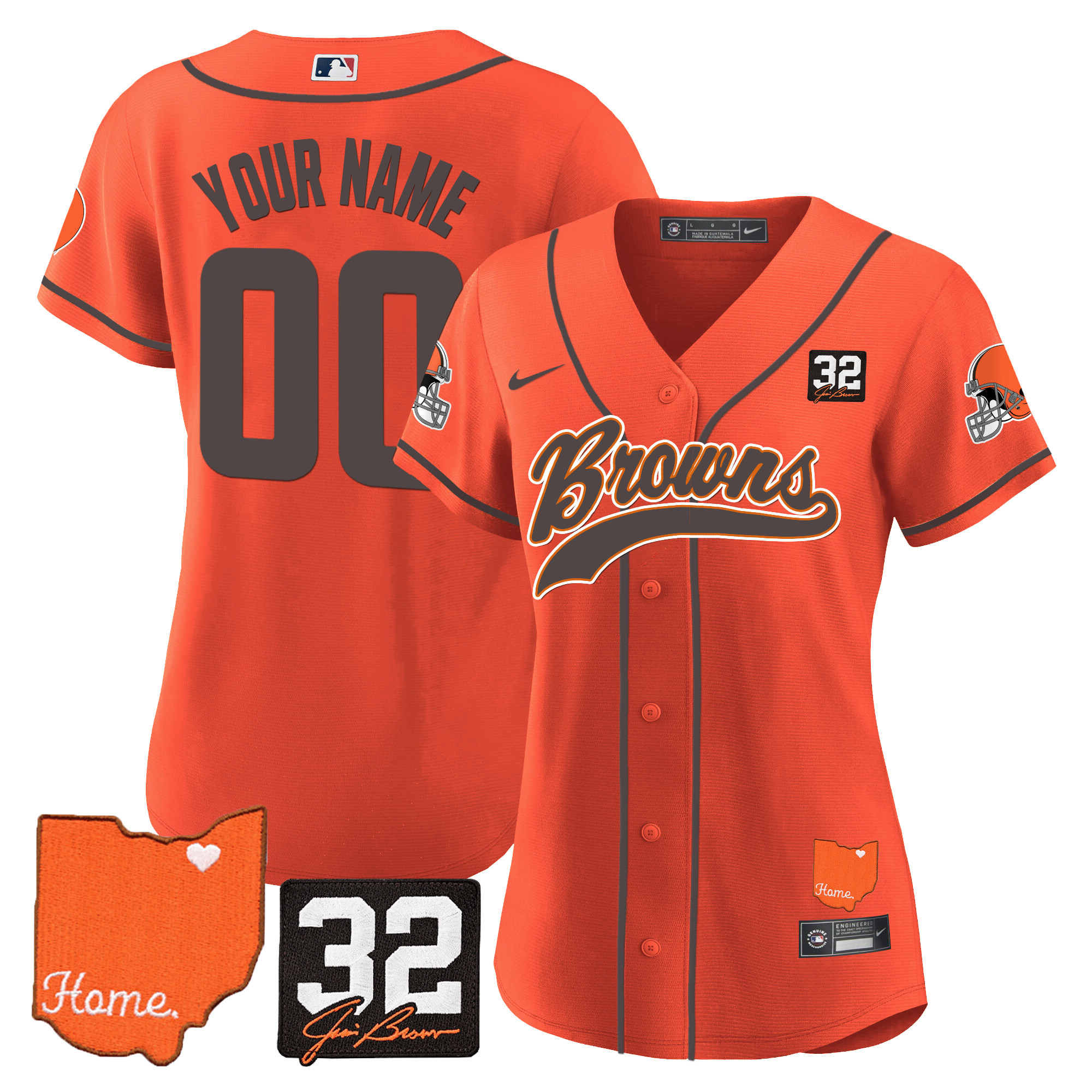 Browns #32 Jim Brown Memorial & Home Patch Baseball Custom Jersey – All Stitched