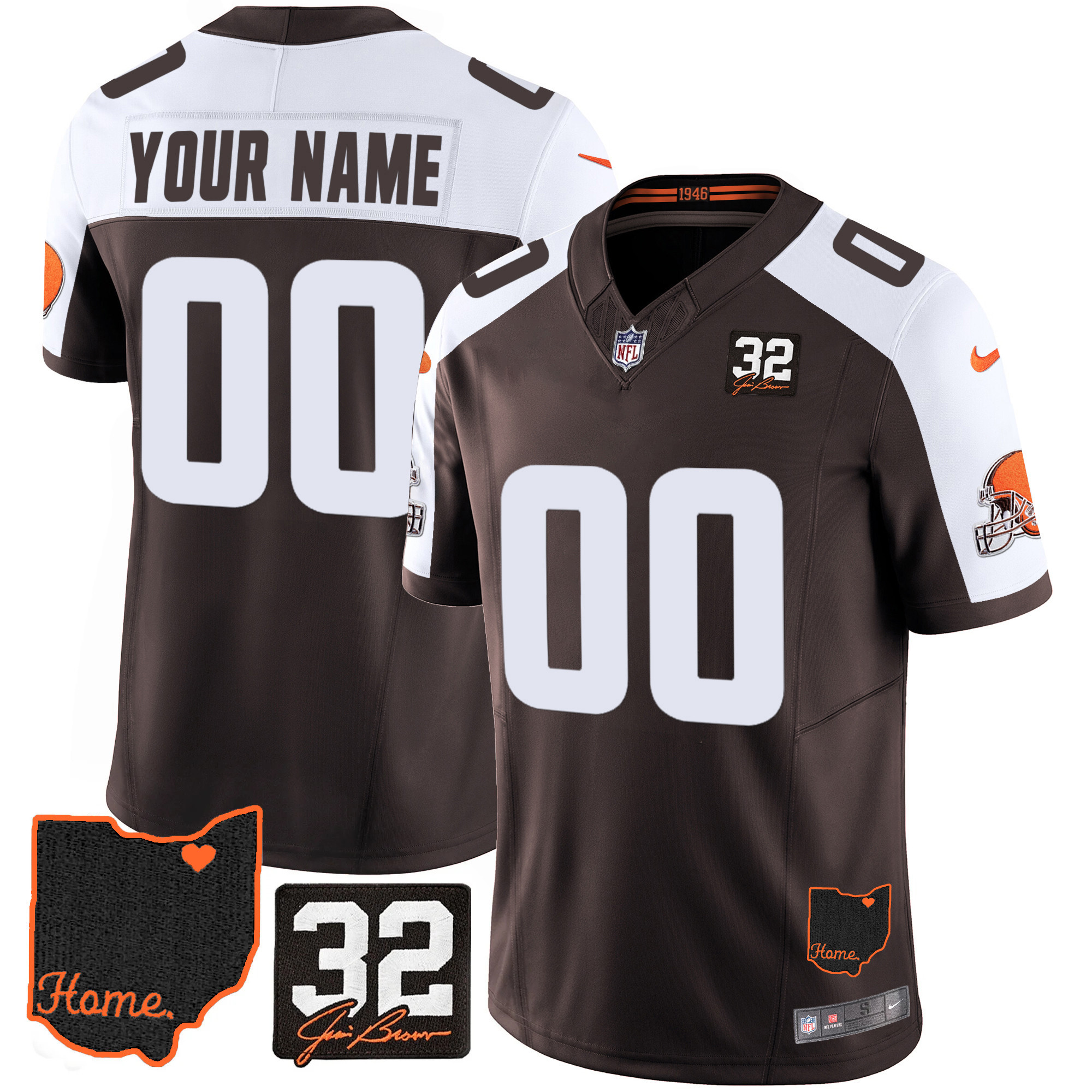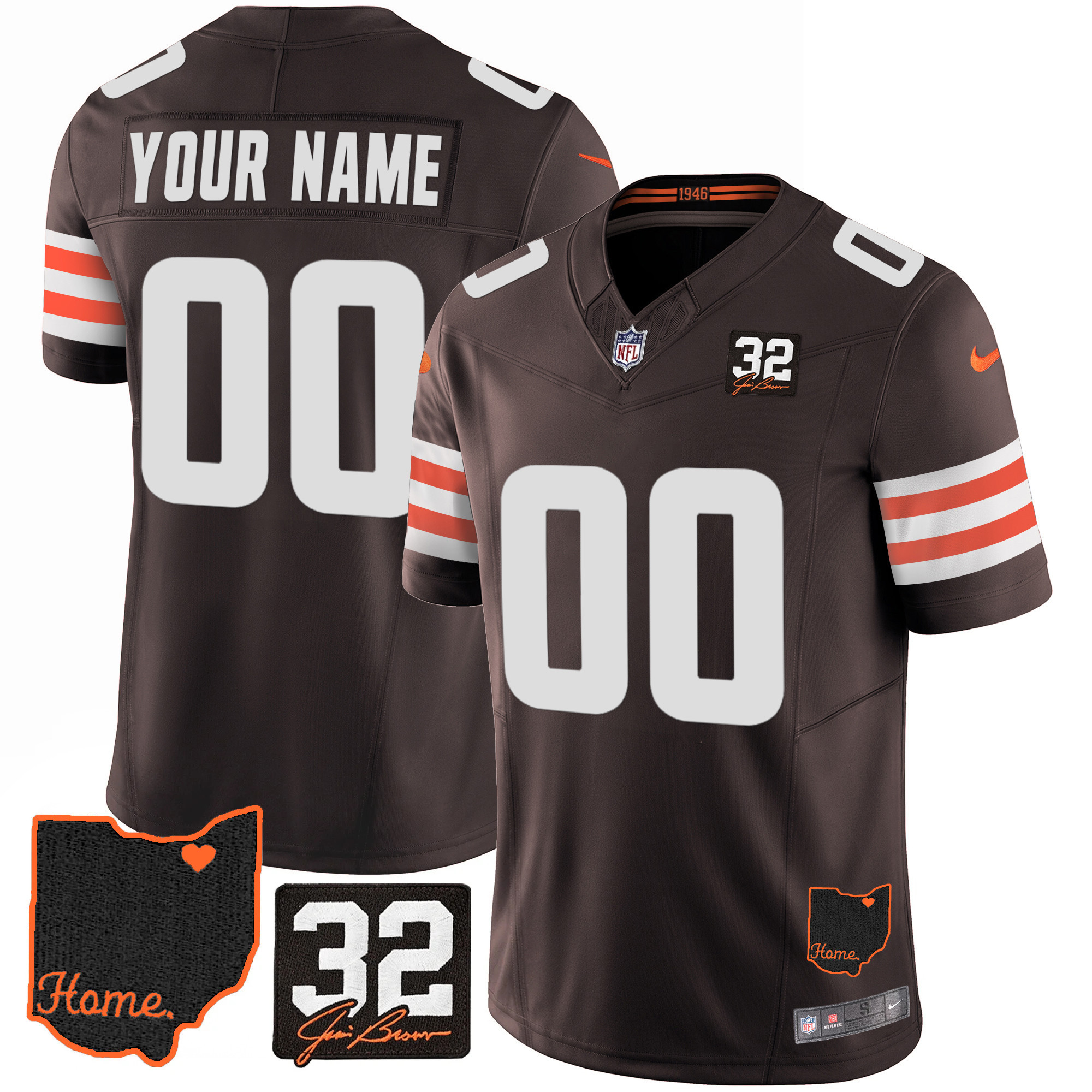 Browns #32 Jim Brown Memorial & Home Patch Custom Jersey V3 – All Stitched