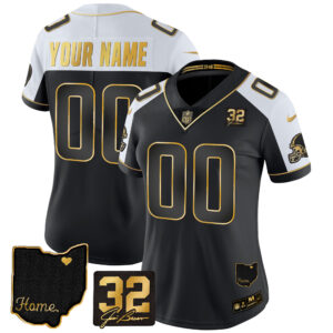 Browns #32 Jim Brown Memorial & Home Patch Gold Custom Jersey – All Stitched
