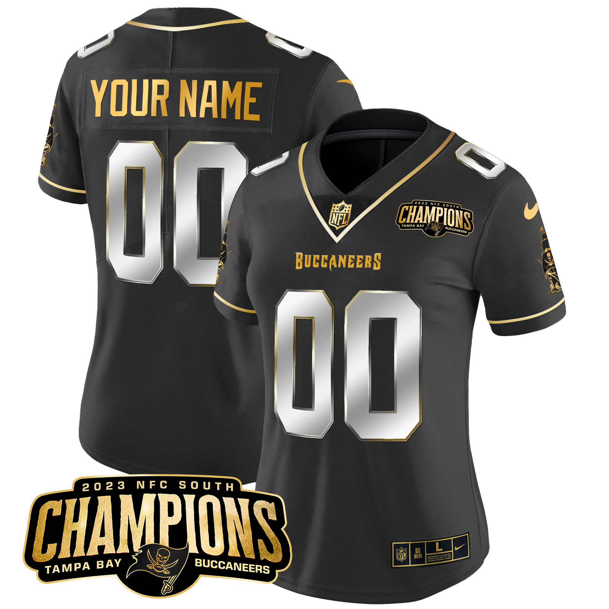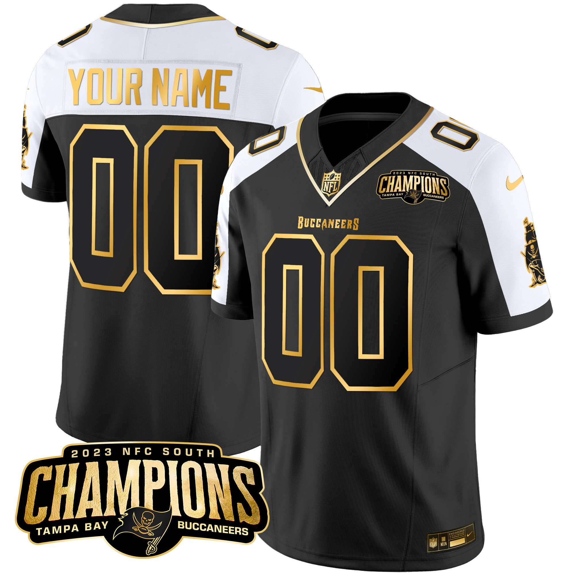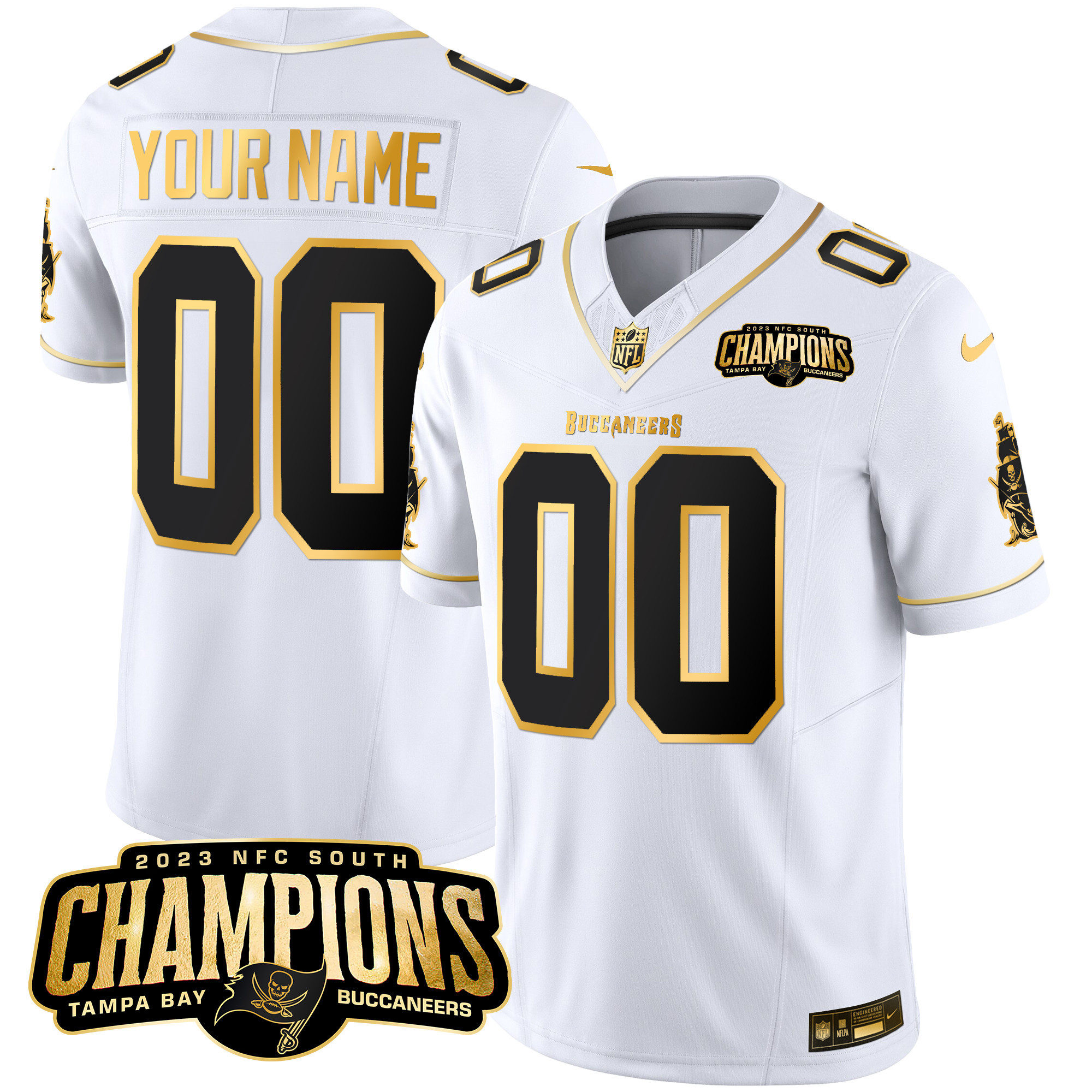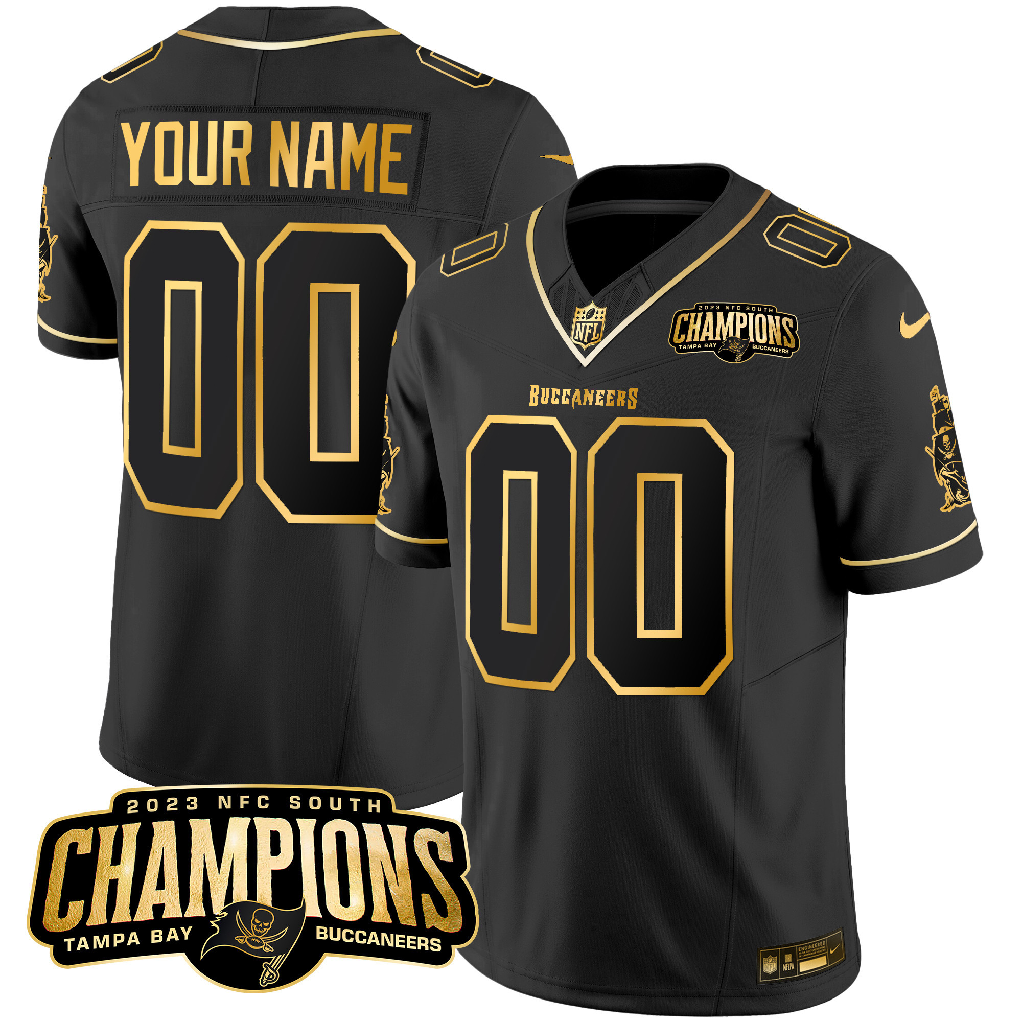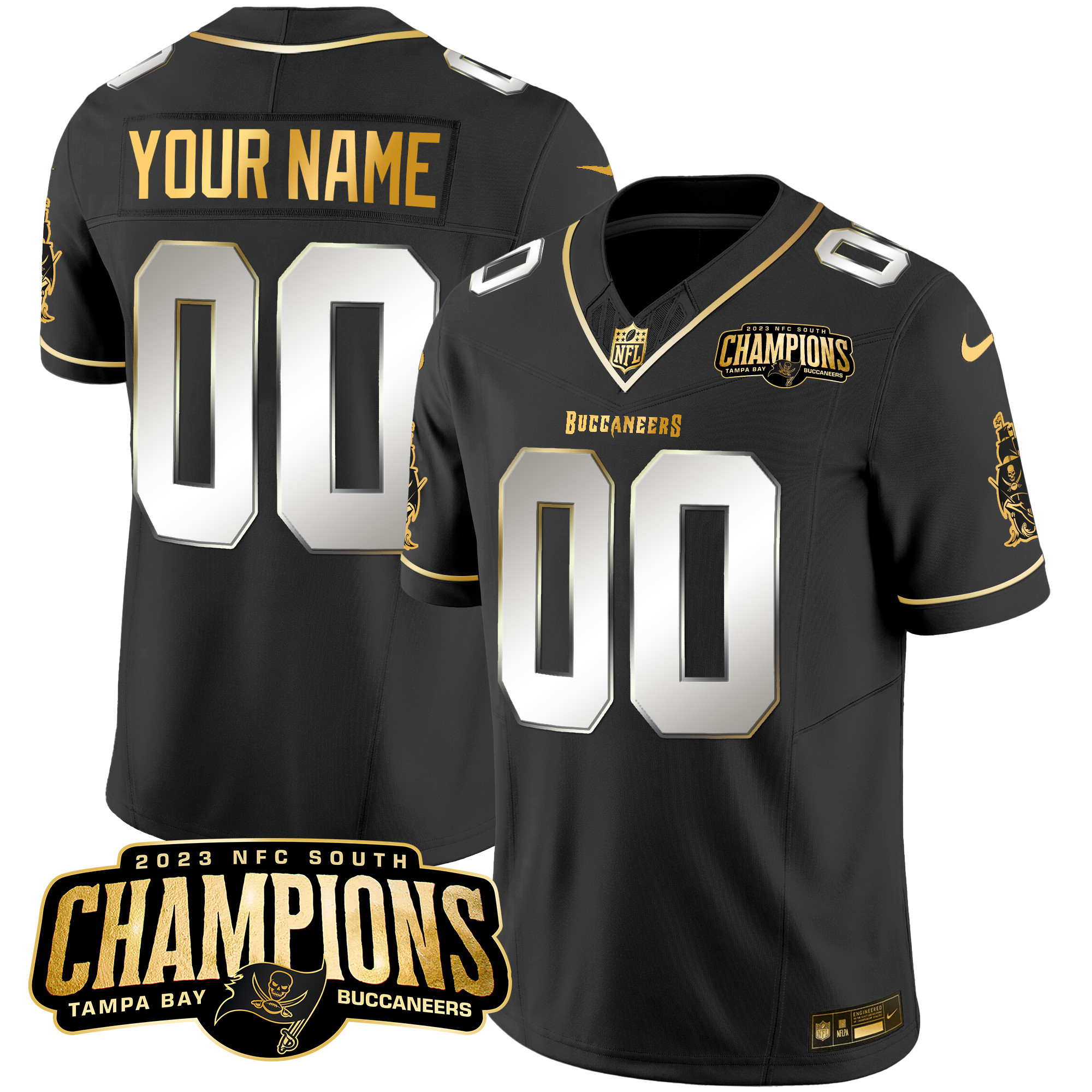 Buccaneers 2023 NFC South Champions Patch Gold Vapor Custom Jersey – All Stitched