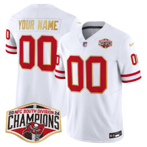 Buccaneers Creamsicle 2024 NFC South Division Champions Patch Gold Trim Vapor Limited Custom Jersey – All Stitched