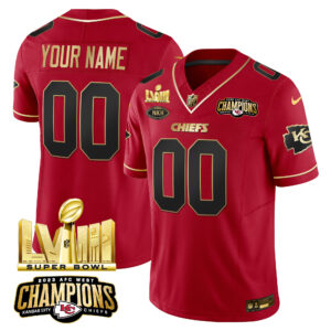 Chiefs AFC West Champions & Super Bowl LVIII Gold Patch Vapor Custom Jersey – All Stitched