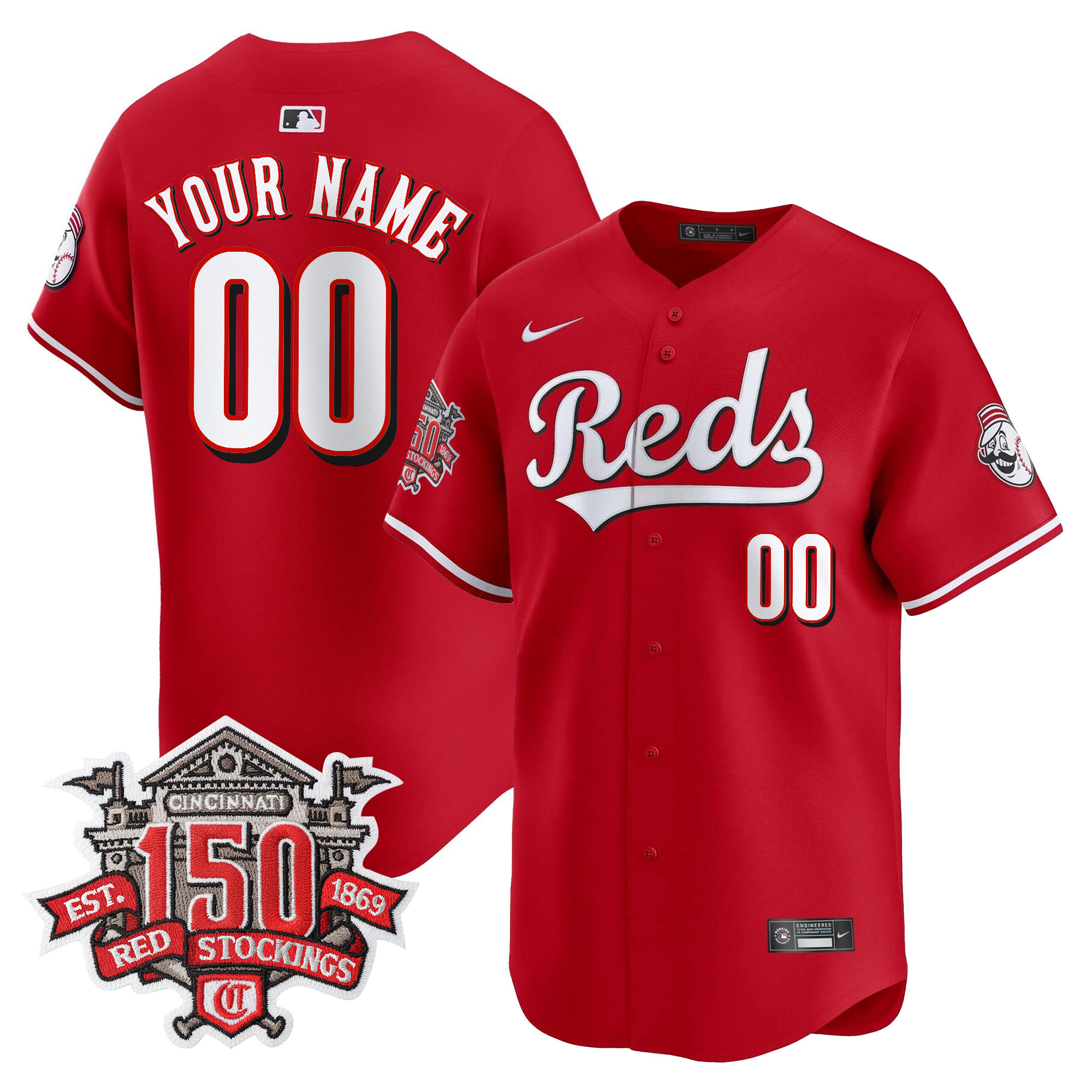 Cincinnati Reds 150th Anniversary Patch Vapor Premier Limited Custom Jersey – All Stitched