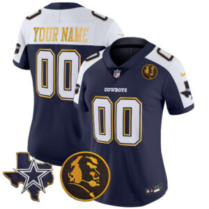 Cowboys Texas & John Madden Patch Gold Trim Vapor Custom Jersey – All Stitched