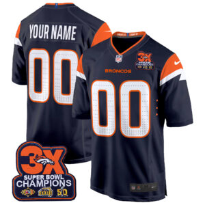 Denver Broncos 3-Time Champions Patch Game Custom Jersey – Al Stitched