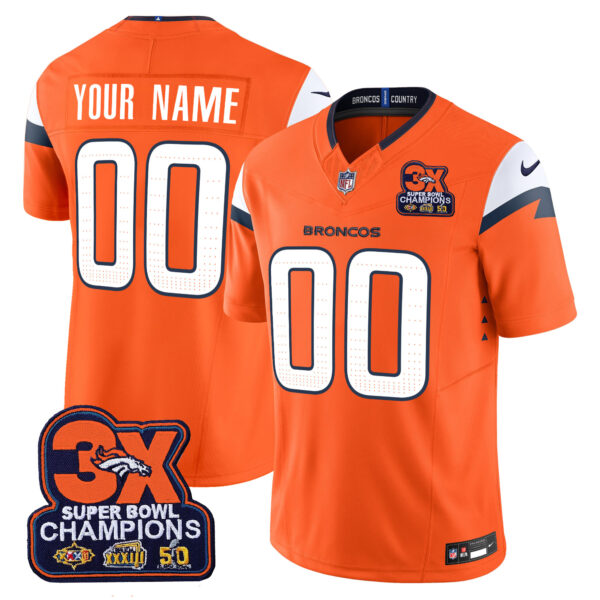 Denver Broncos 3-Time Champions Patch Vapor Limited Custom Jersey – All Stitched