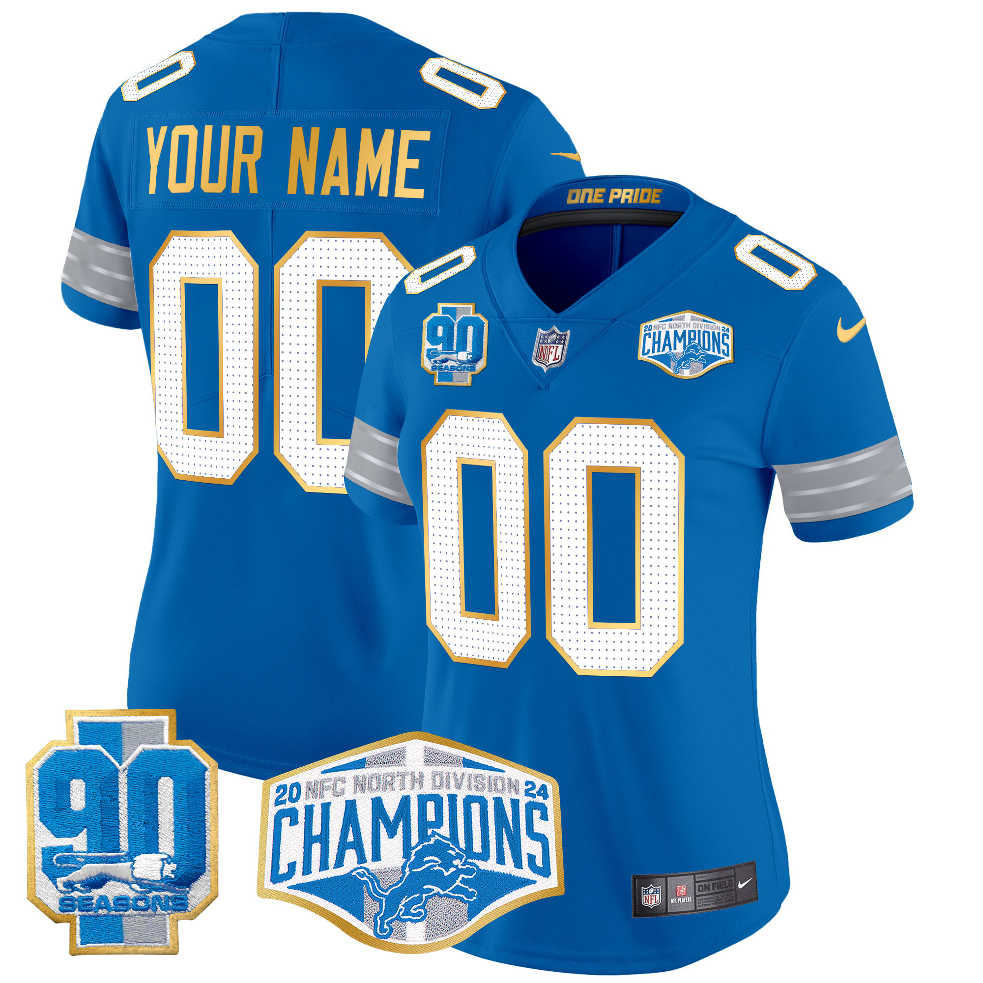 Detroit Lions 2024 NFC North Division Champions Patch Gold Trim Vapor Limited Custom Jersey – All Stitched