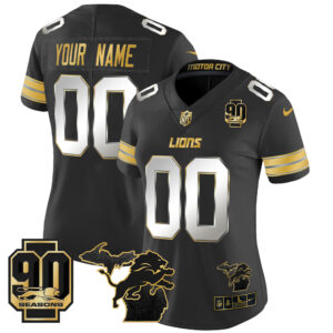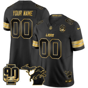 Detroit Lions 2025 Michigan & 90th Season Patch Gold Vapor Limited Custom Jersey – All Stitched