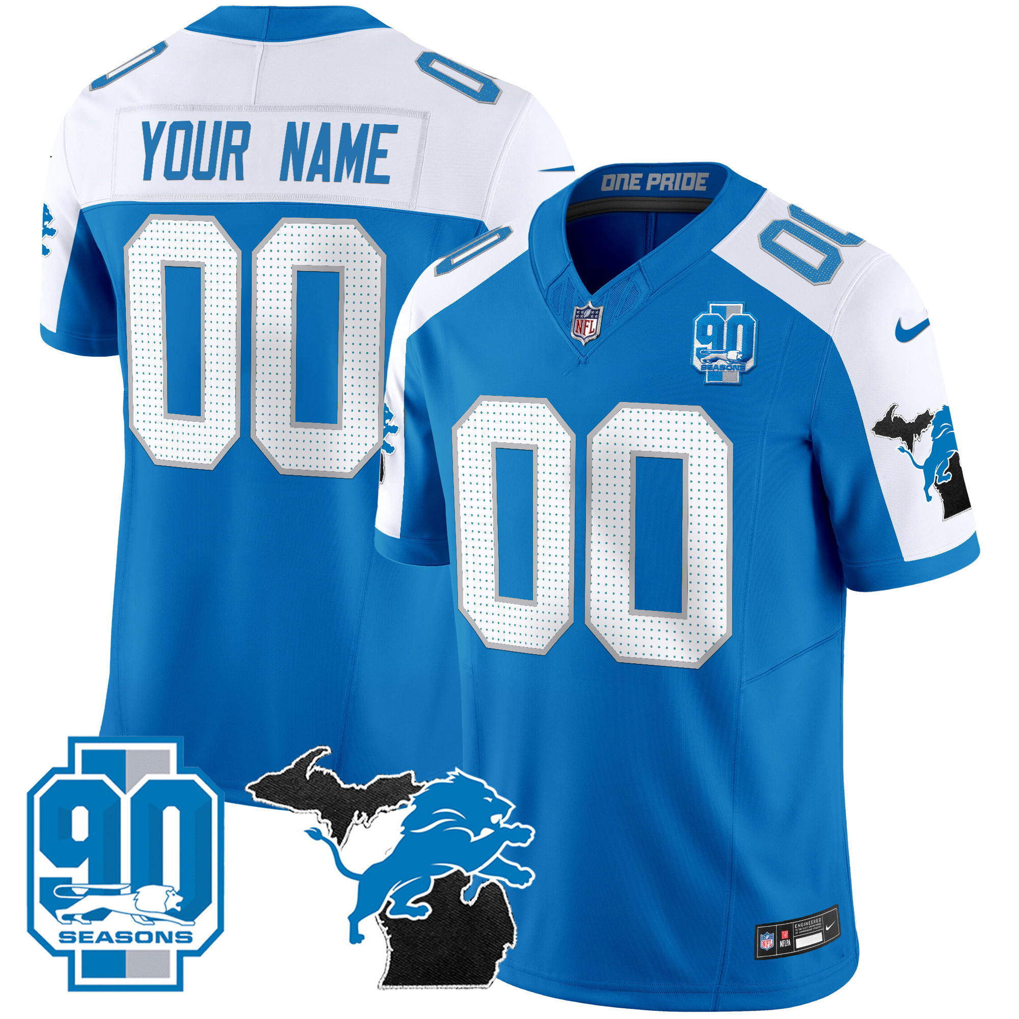 Detroit Lions 2025 Michigan & 90th Year Patch Vapor Custom Jersey – All Stitched