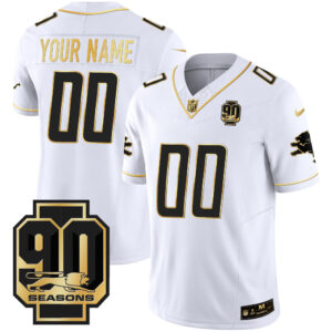 Detroit Lions 90th Year Patch Gold Custom Jersey – All Stitched