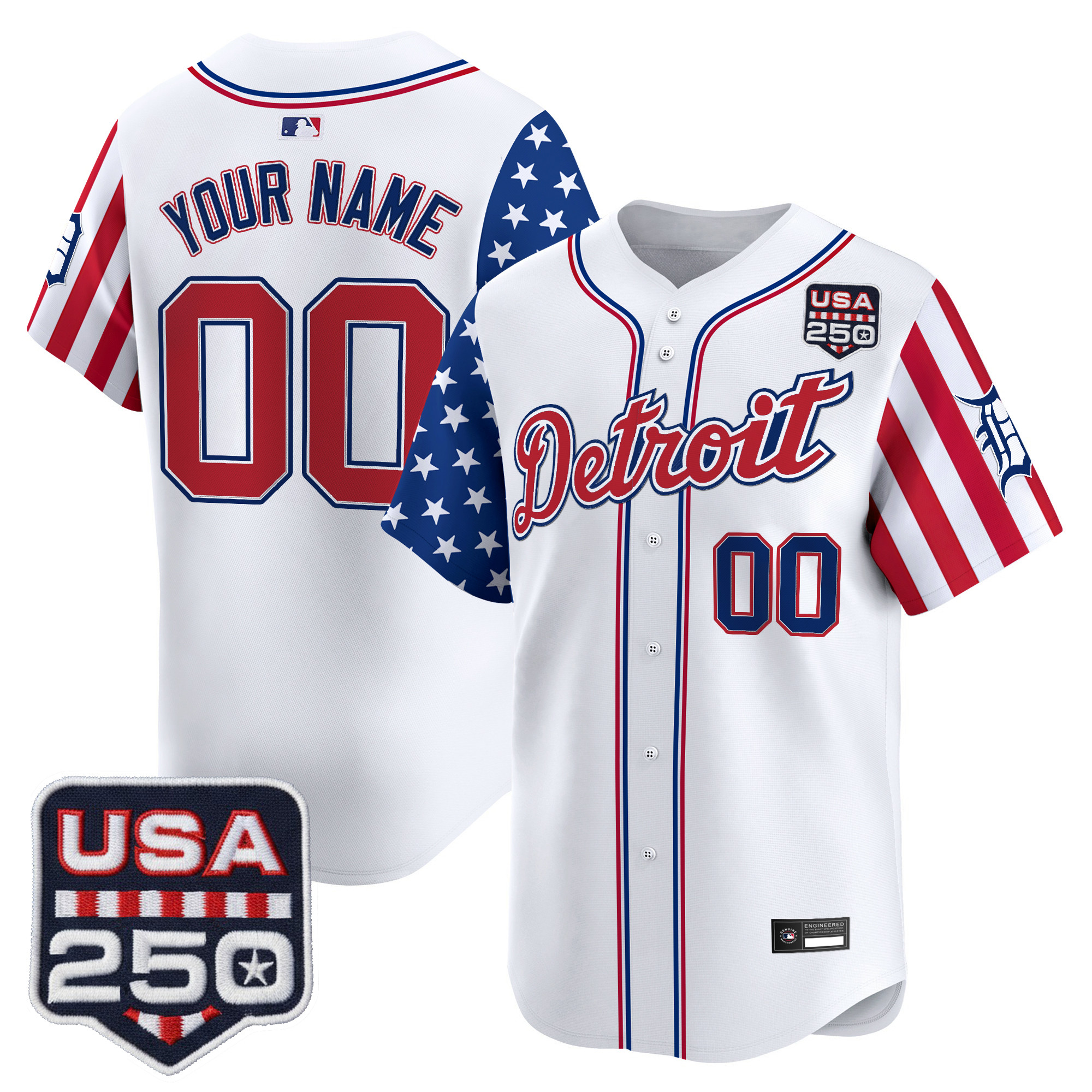 Detroit Tigers “America250 Edition” Vapor Premier Limited Custom Jersey – All Stitched