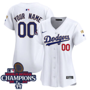 Women’s Dodgers 2025 World Series Gold Trim Vapor Premier Limited Jersey – All Stitched