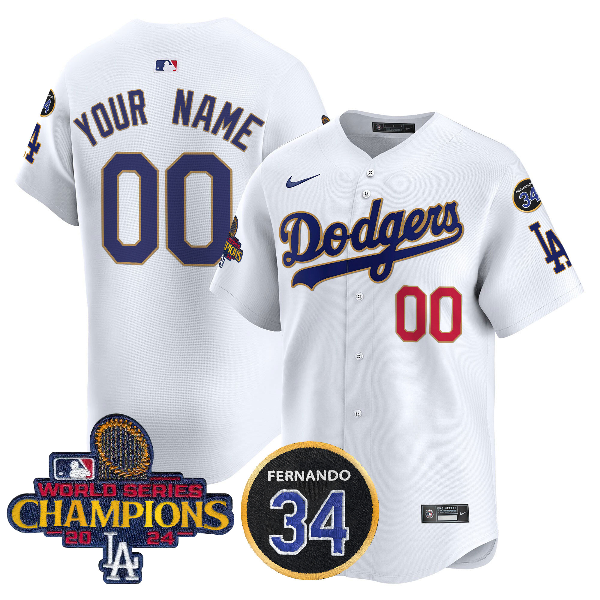 Dodgers 2024 World Series Champions Gold Trim Vapor Premier Limited Custom Jersey V2 – All Stitched